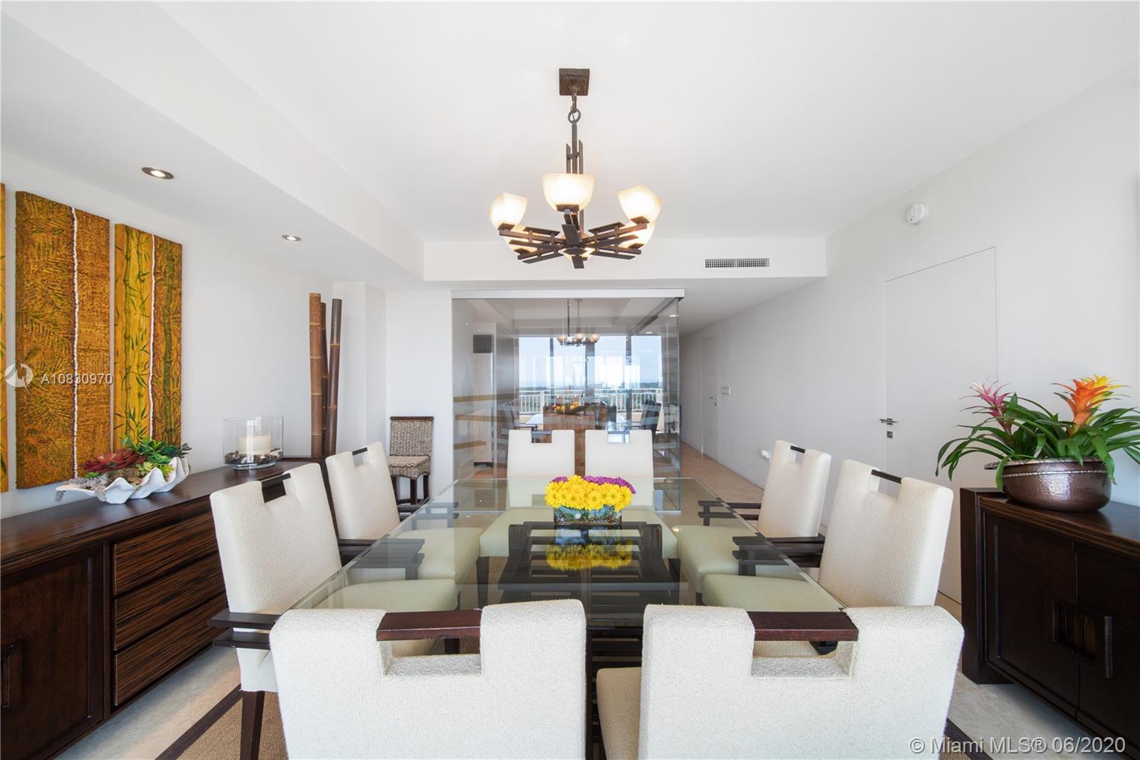 Stunning ocean and bay views from this corner unit at premier Ocean Tower One. Unit features 3 Beds + Den + Staff quarters, 4.5 Baths and has been remodeled with a new Italian kitchen with European-style glass enclosure allowing you enjoy both ocean and bay views from every social area. Kitchen includes a new smart designed island and a very ample pantry. All new Italian doors, custom electric shades and blackouts in every bedroom, new wood type floor in all bedrooms, all crystal shower doors, custom closets. Absolute pristine condition. Offered furnished and ready to move in! **SEE VIDEO IN VIRTUAL TOUR**