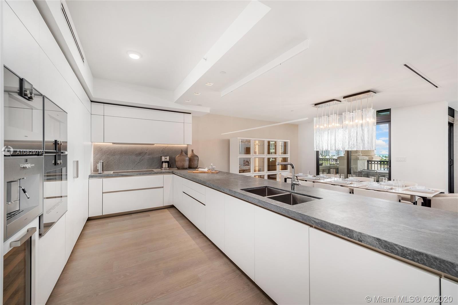 This turnkey, fully furnished designer unit by Henge at Palazzo Del Sol, the new luxury building on Fisher is stunning. No expense spared. This unit features 3,793 SF, private elevator entry, oak floors throughout, custom wallpapers, lighting, millwork & built-ins. Spacious open flow-thru layout w/extended living, family & dining areas with amazing views to Govt. Cut, city & Ocean. The chic gourmet Boffi kitchen sports top-of-the-line Gaggenau appliances & exotic stone counter tops/backsplash. A private principal suite offers direct terrace access & water views, & Book-Matched Statuario marble bath with walk-in glass-marble rain shower & sunken oval tub. The other 2 bedrooms w/en-suite baths & a shared terrace w/views to Fisher Island & Miami skyline. 5-Star Palazzo Del Sol amenities.