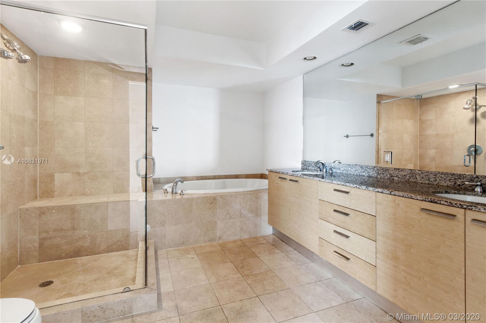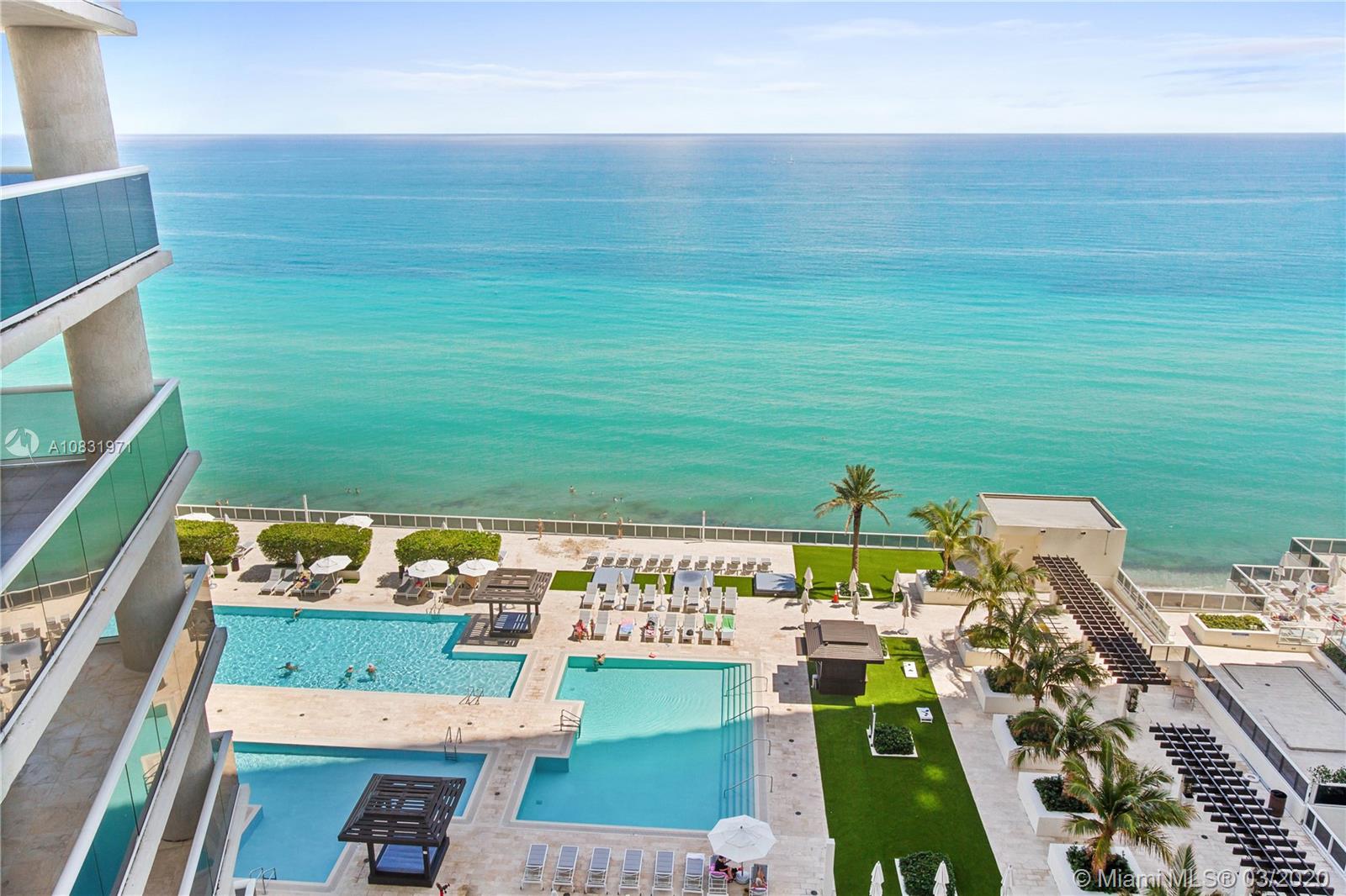 Spectacular corner unit 2 bedrooms, 2 baths with 1782 sq. ft. living area and 457 Sq..ft. wraparound balcony. Marble floors throughout, built-in Closets, granite counter tops, electric blinds in living room and blackout designer curtains in master bedroom. Kitchen Aid Appliances. Spectacular Ocean and Intracoastal views. SE/ W exposure. Infinity pools, full service spa, 50,000 Sq ft. fitness center overlooking the ocean, regular exercise classes, restaurants, pool and beach service, valet and concierge, Resort style amenities.