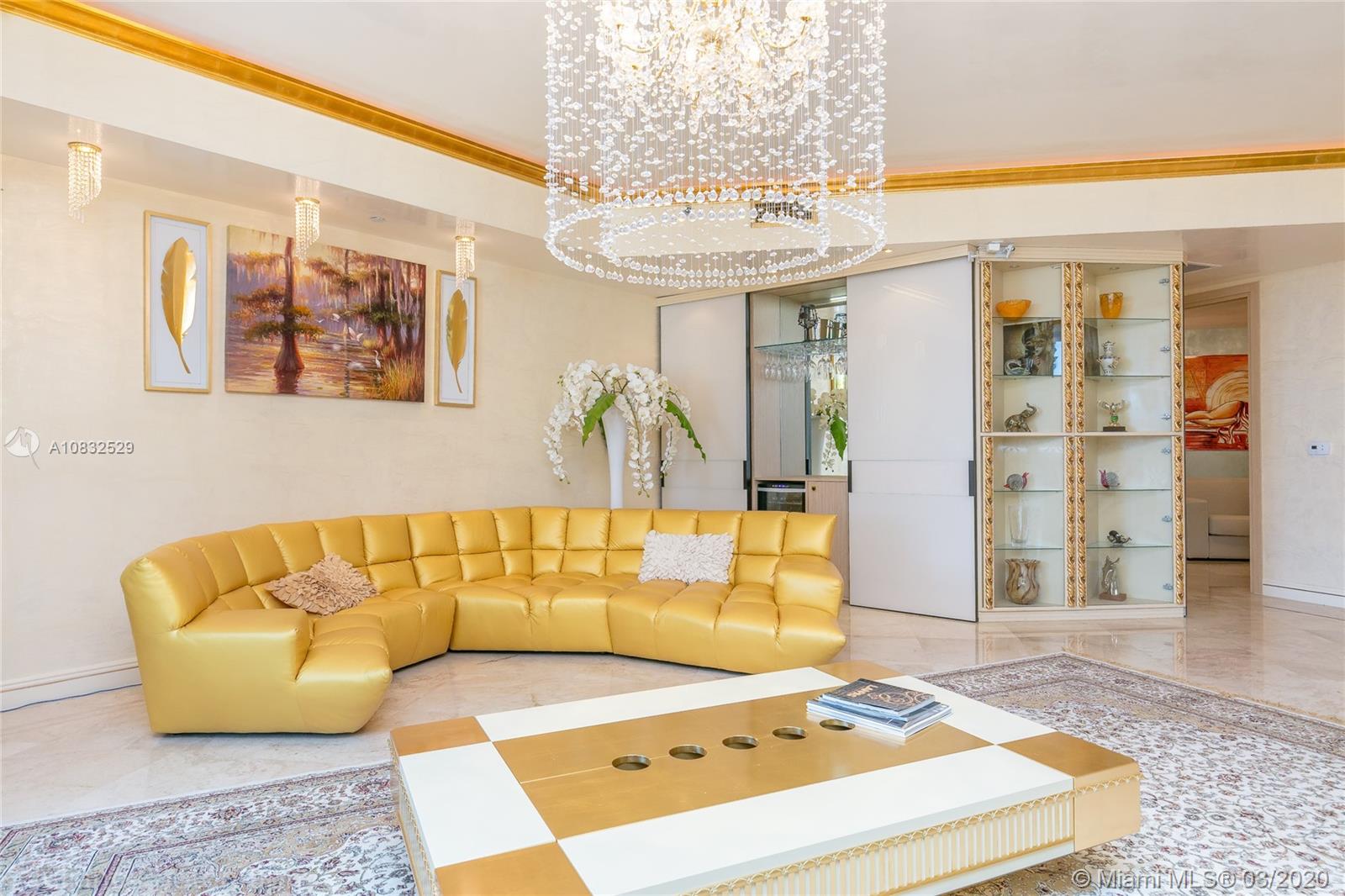 Unlike any other unit! Professionally decorated and fully furnished with beautiful Ocean views and huge patio that leads to a private pool deck! Entry through a private foyer: Marble & Onyx floors, Custom designed kitchen, 24karat gold-plated accent wall, Ultra modern luxurious bathrooms, Master bedroom with Venetian Plaster and Swarovski crystal ceiling, Security cameras throughout the unit, built-in entertainment center, Grand chandeliers, built-in bar. Enjoy all the Trump Amenities! Two heated lap swimming pools, walk-in jacuzzi, state of the art fitness center, restaurant, valet parking, security 24/7. Must see to appreciate!