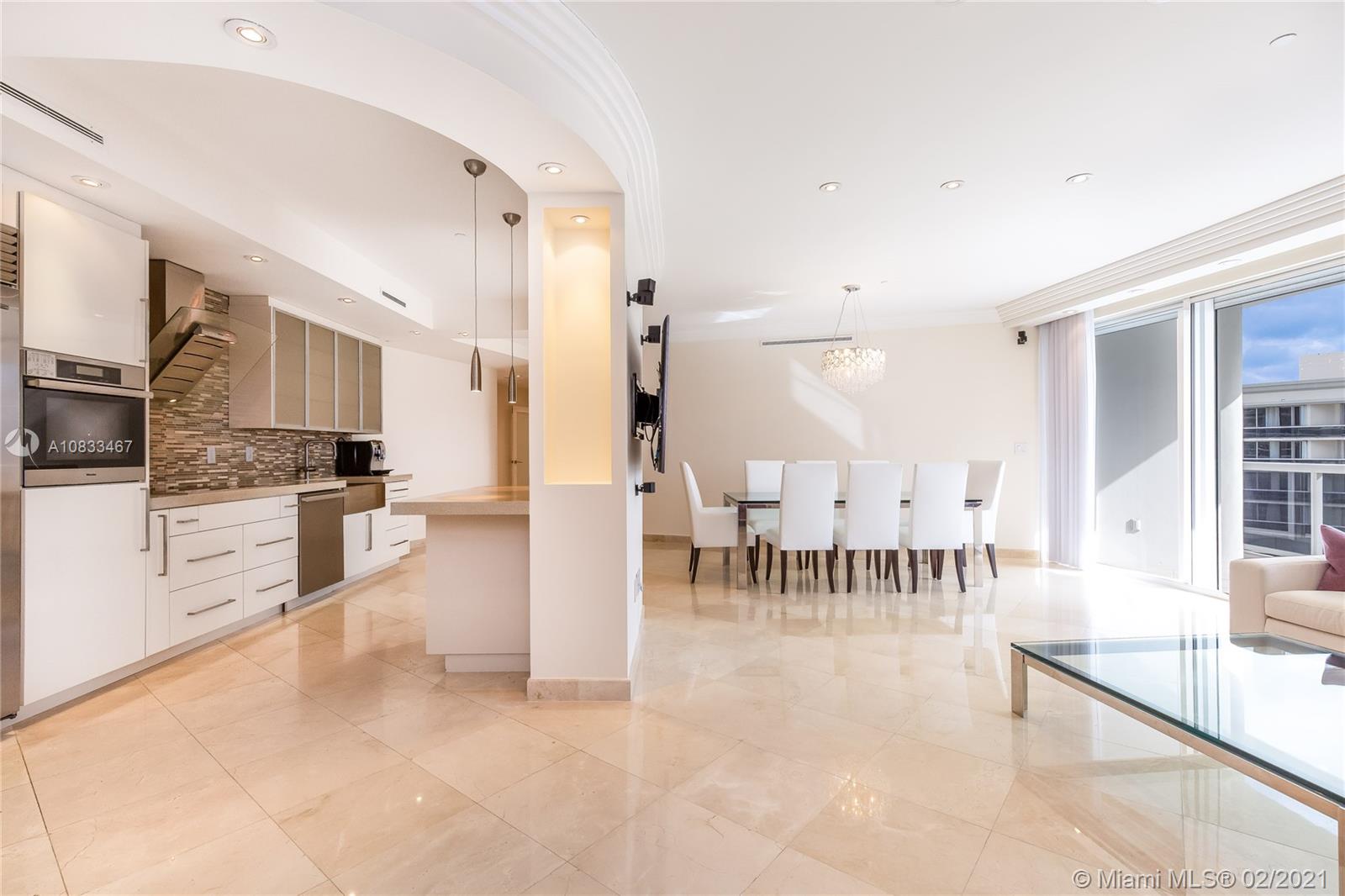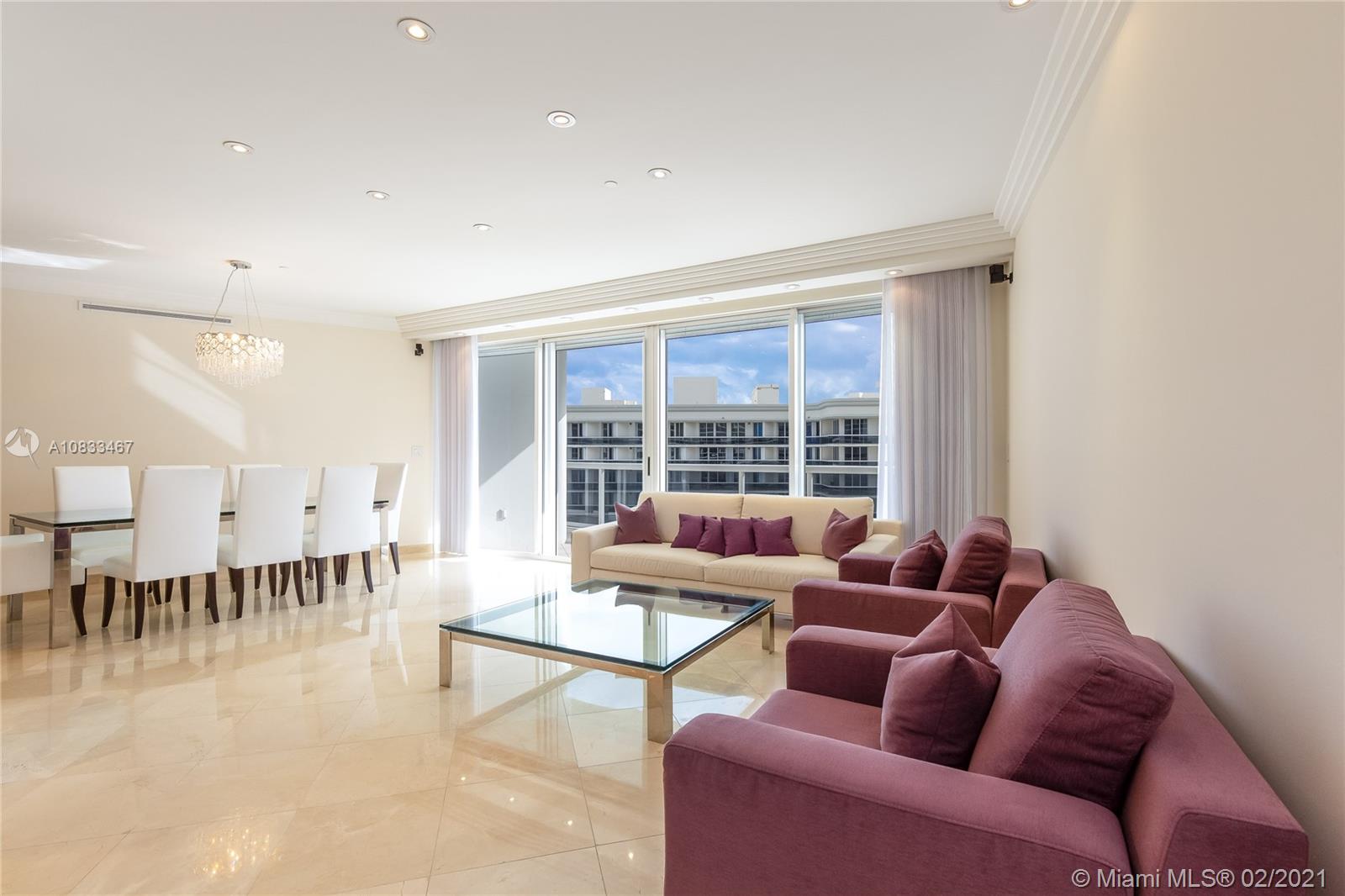 A very Special majestic tower condo in Prominent Bal Harbour! This spacious unit 3/2.5 bedrooms & baths is offering spectacular views of the ocean, Intracoastal & the Miami skyline. Private elevator will take you up to your villa in the sky on the ocean. Spacious living room offers you plenty of room for entertainment. There is a spacious balcony w/access from all rooms, 10 ft high floor to ceiling windows. Beautifully upgraded with exquisite materials throughout the apartment. Marble floors in the living rooms and wood floors in bedrooms. Newer kitchen with Miele appliances and much more. This luxurious property offers concierge service, high level security, valet, a private dining restaurant, fitness, tennis and basketball court & a billiard room. Invite your clients! Price reduced.