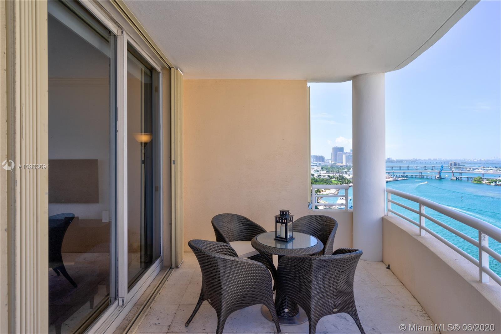 Breathtaking bay views from this 2 bedroom 2.5 bath in the exclusive Brickell Key, a private island in the heart of Miami that offers children’s playground, parks, restaurants, deli market and much more. New kitchen and new tile floors in the bedrooms. Full service condo with concierge, pool, BBQ area, clubroom, squash, conference room, gym, sauna and complimentary valet. 2 assigned parking spaces. Basic cable and internet included in the HOA fees.