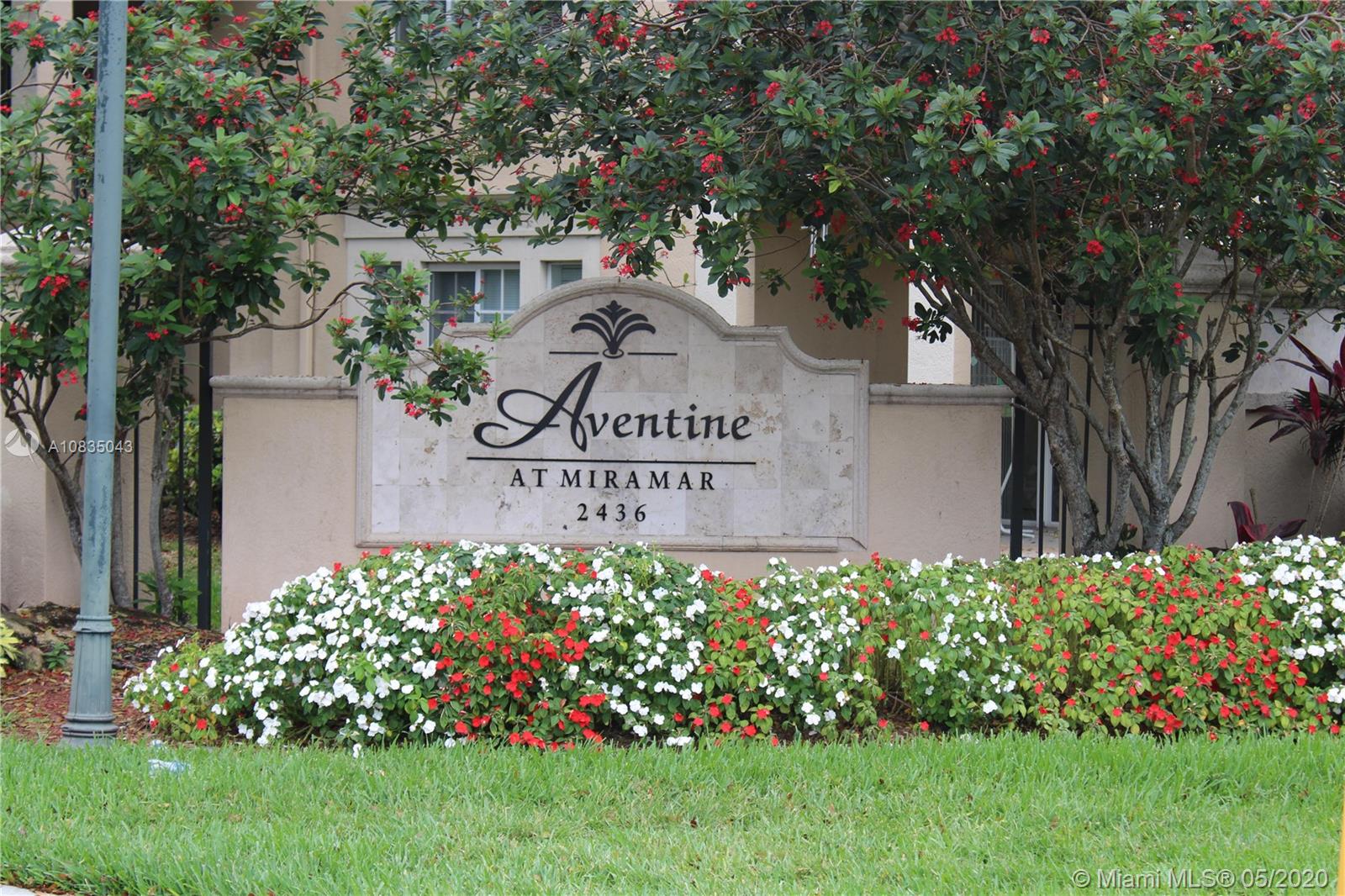 Excellent remodeled property in Aventine in the Miramar community 2 bathroom completely remodeled with very good taste and 2 bedroom, custom made walking closets, nice size living room, granite counter in the kitchen plenty of cabinet, laundry room, balcony to enjoy the evening after work, bring family and friends to the pool and spend a good quality of time with them, storage in the balcony, texture in walls and ceiling, lights fixture, ceramic tile on the main areas, laminate on the bedrooms, the association includes water and garbage, alarm, pest control, patrol security 24 Hours, Private community offers amenities from bike/jog path,pools, club house with a salon for events, gym to get in shape and keep a good health and more,don't miss the opportunity to live in this complex,call now