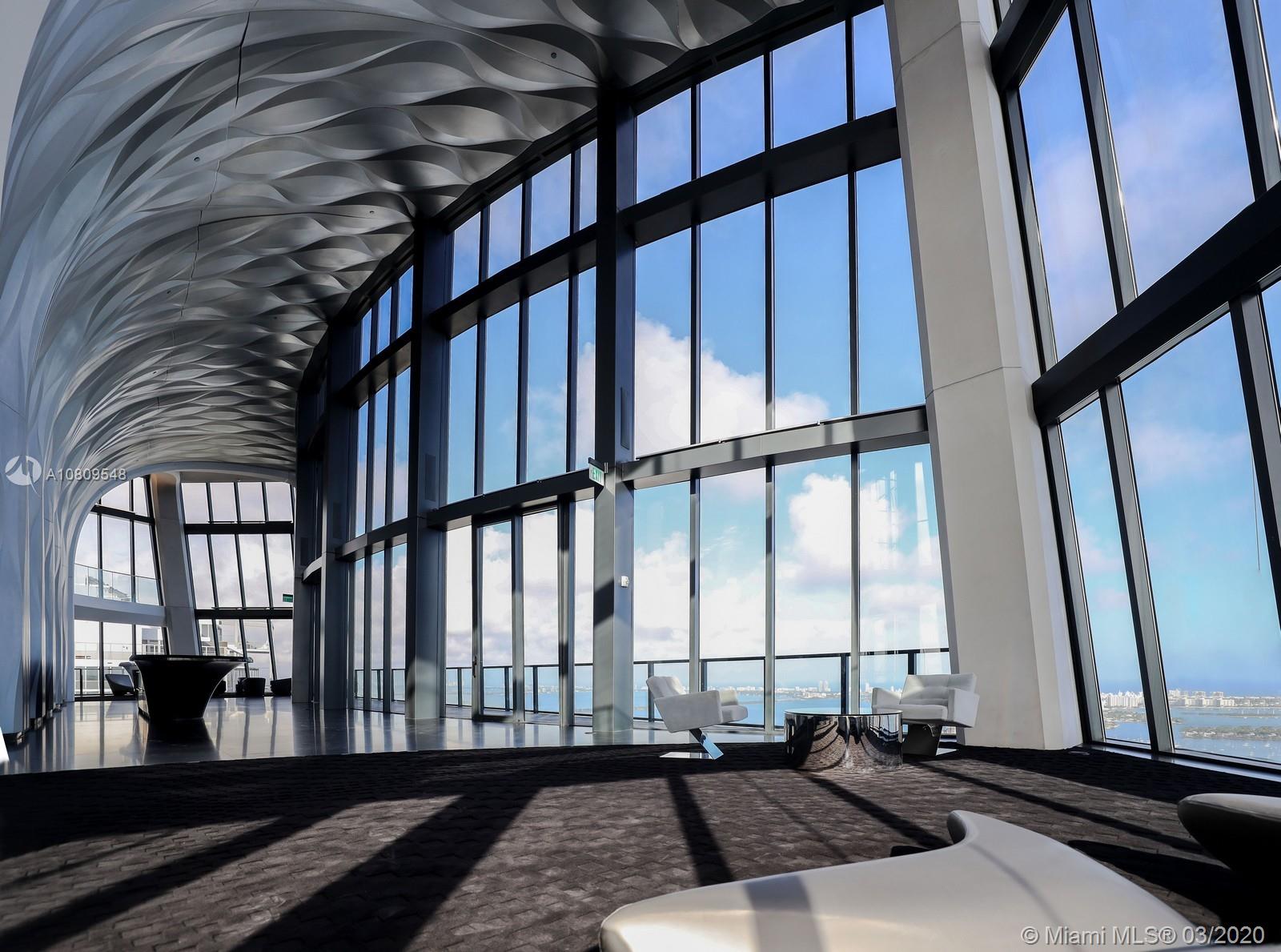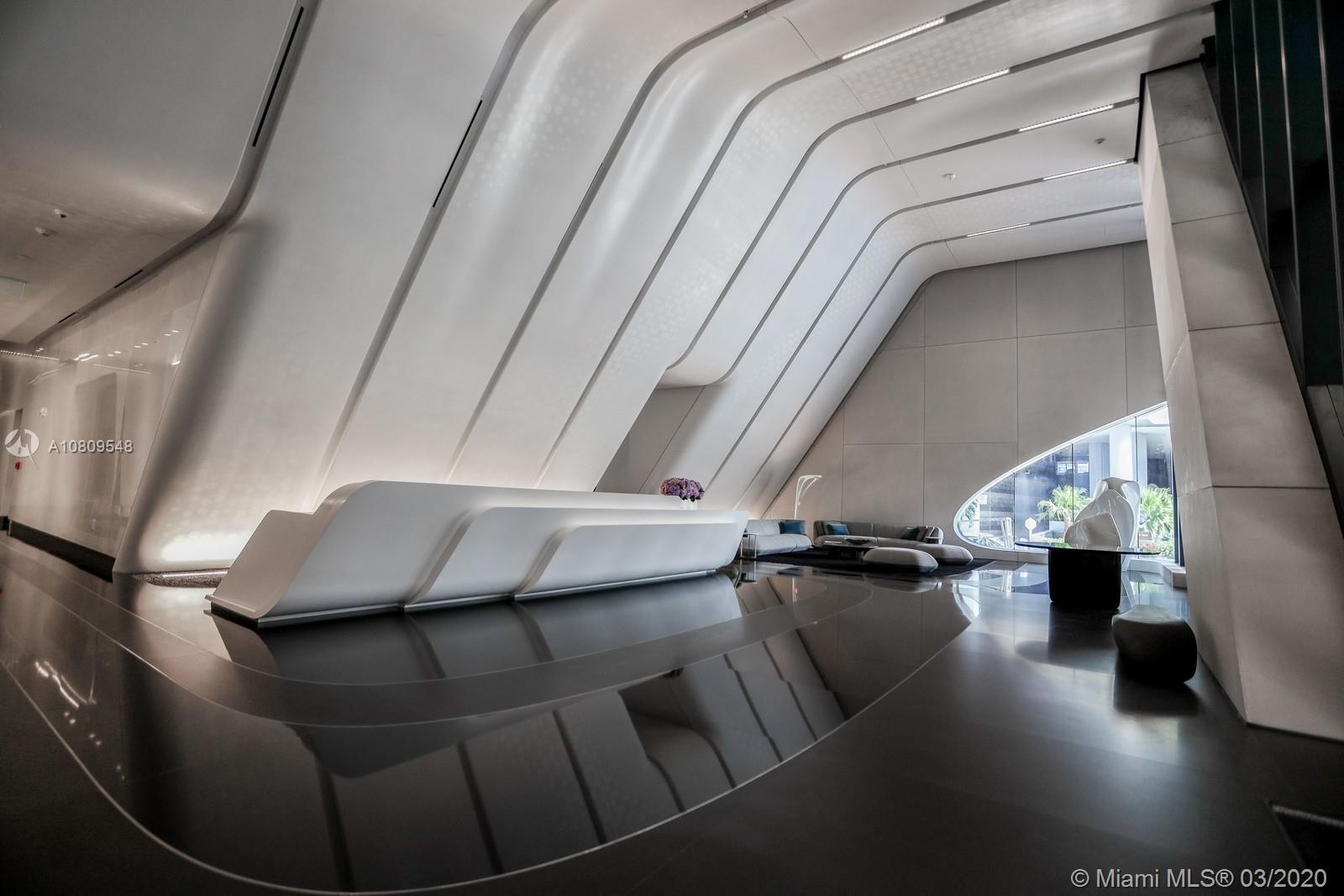 One Thousand Museum by Zaha Hadid, Miami most prestigious new residential tower pushes the limits of innovations and blurs the lines between art and architecture. The limited collection of museum quality home offers an unprecedented level of service and amenities. This 8,344 sq. ft. duplex townhouse features a flow through floor plan with unobstructed Biscayne Bay views, a floating staircase designed by Hadid, 20 Ft. ceiling, library , loft, 5 bedrooms, smart home technology and custom closets. The photographs are renderings.