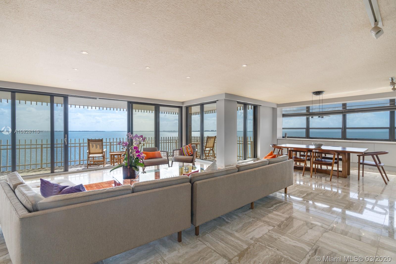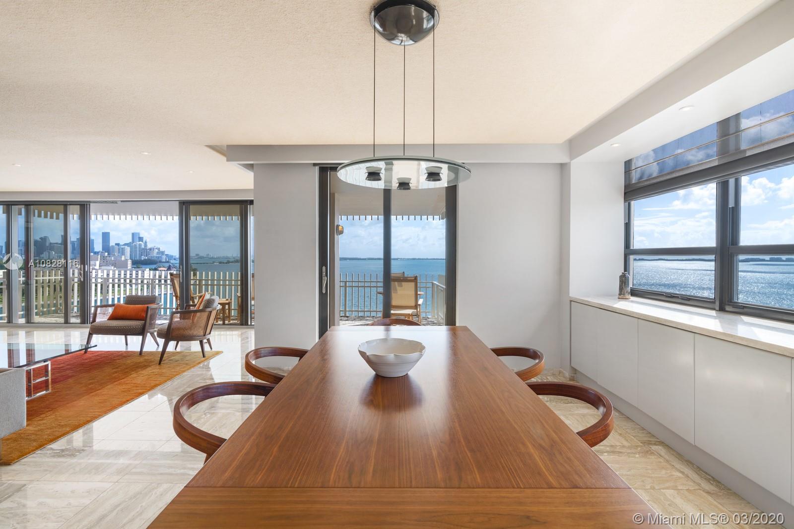 Welcome to Unit C1401, a spacious 2,614 sf condo of 3BR/2+1BA, boasting breathtaking unencumbered panoramic views of Downtown Miami, Biscayne Bay, and the ocean. Lounge in the spacious living and formal dining rooms with an ample terrace. Features include impact doors and windows, wood and porcelain floors, and a breakfast nook adjacent the foodie kitchen with Bosch, Kenmore, and KitchenAid appliances. The spacious primary suite, with seating area, private balcony, and grand walk-in closet is complemented by an impressive primary bathroom. Positioned in sophisticated and ideally located Grove Isle with access to luxurious amenities including a marina, fitness center, pool, club, and several tennis courts. Perfectly found in Coconut Grove, with easy access to dining, shops, & entertainment.