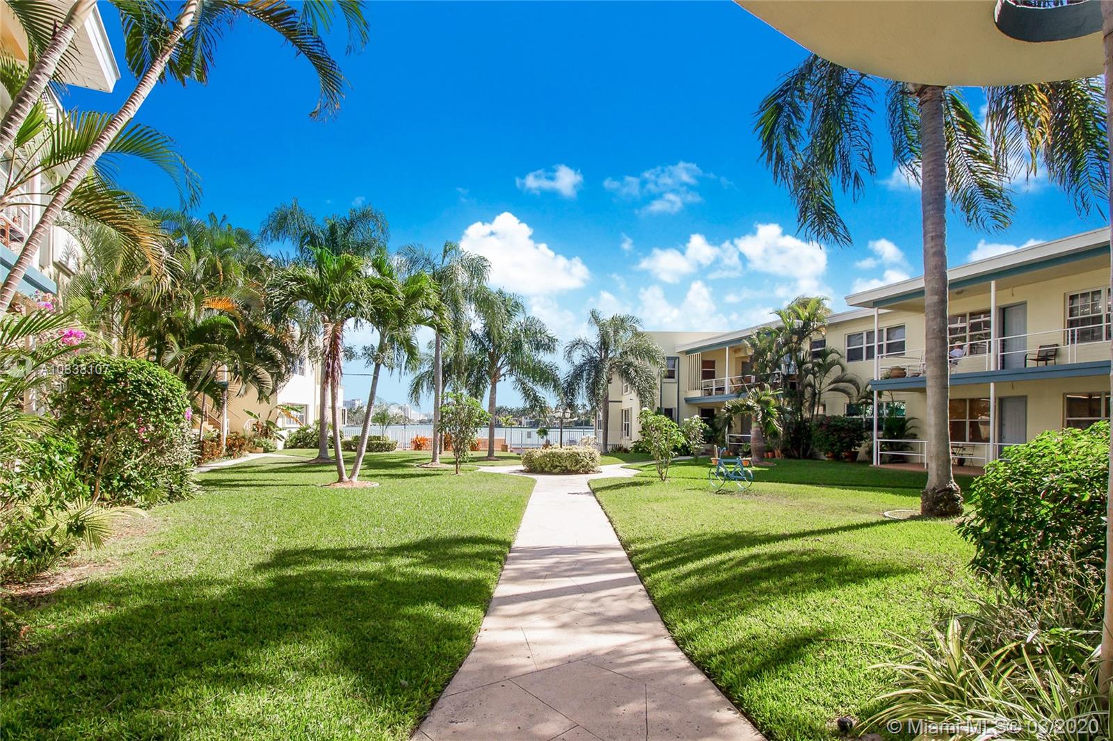 You must see this mid-century modern 1 bed / 1 bath condo in Normandy Isle's 'Bayside Condo' a boutique, waterfront condo on Miami Beach. Unit has great water and garden views! Building is pet friendly and is very well maintained! Bike and paddle board storage areas! Great location & Easy living!