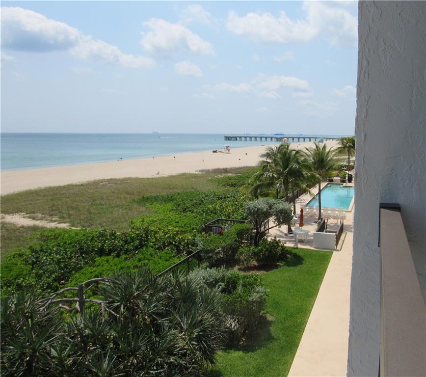 Wow! Now available: a two bedroom direct oceanfront, boutique building with just 48 units. Spectacular 180 degree unobstructed view of the ocean, the beach and the dunes from Pompano pier to Hillsboro lighthouse. Upgraded with neutral decor, porcelean floors, decorator paint, crown molding. Remodeled kitchen has granite, stainless steel appliances, white cabinets and washer/dryer. Both bedrooms will accommodate king beds, Master bath has roman tub. New impact front door, impact glass on ocean side and accordian shutters on front windows. This is the ultimate in oceanfront living with garage parking, gym, heated pool and clubroom. In perfect condition and in a quiet, clean building that's walking distance to pier and restaurants. Don't miss this beauty.