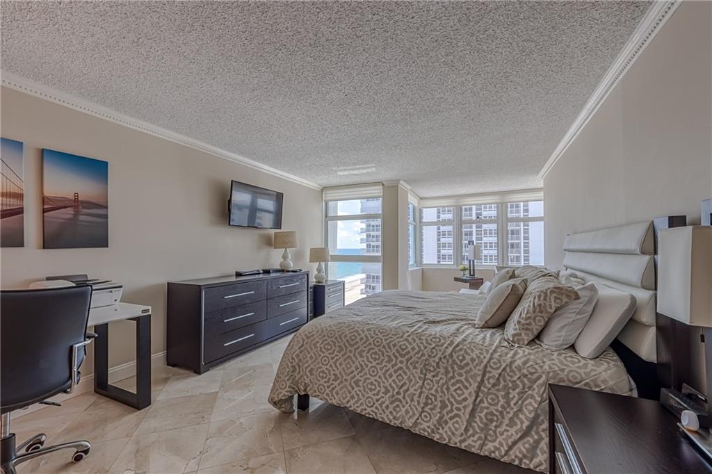 Check out the virtual tour of this furnished OCEANFRONT unit that is fashionably updated with Carrara marble bathrooms, tile flooring and crown molding thru-out, granite / marble countertops & more. Split bedroom plan with Ocean Views from both bedrooms and balcony. Unit and building have Impact windows & doors, WASHER / DRYER in unit and plenty of Walk-in Closets and extra storage. Beautifully renovated building offers resort style living; 24 hour security, tennis/pickle ball court, sauna, heated pool / hot tub, Gym and Garage Parking for 2 cars are just a few of the many amenities. Entertain friends in the Sky Lounge with Panoramic views of the Coast and Skyline located on the 29th floor. Low monthly maintenance for a DIRECT OCEANFRONT BUILDING.