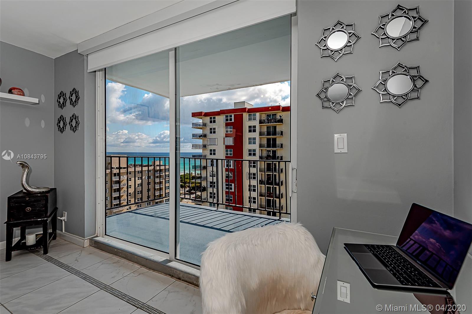 REDUCED!!! SELLER HIGHLY MOTIVATED WILL ENTERTAIN ALL OFFERS!!! SQUARE FOOTAGE IS BIGGER THAN SHOWN ON PUBLIC RECORDS!! Never ending ocean views, beautifully upgraded, located on the 14th story, across the street from the Beach, Brand new A/C, Kitchen and bathroom updated, High Impact resistant windows and sliding door, smooth ceiling throughout unit and custom dropped ceiling with recessed lightning fixtures in kitchen. Plenty of closet space and extra storage available with building. Bathroom updated and tiled up to the ceiling and glass doors on tub. Heated pool, bicycle storage, sauna, social room and more. All assessments paid off and NO special assessment on the redar, concrete restoration and 40 year inspection just passed! Minutes away from Hollywood Beach Broad Walk and Downtown.