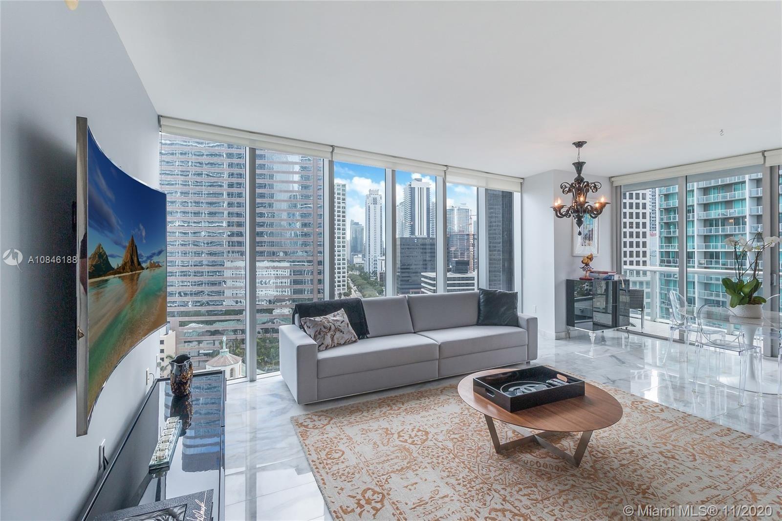 This unit has the BEST SALE PRICE for a 2 Br/2Ba in the Luxurious & Prestigious condo-hotel tower (Tower 3) of ICON BRICKELL. This unit features 1,459 S/F Living area (the largest floor plan in this tower). Available for sale in AS-IS conditions with furniture & TVs included (rare to find). Top of the Line Custom designed by Philippe Starck, Fully Furnished & Well Equipped, Corner Bright Residence with marble Floors welcome you into into Panoramic Bay & City Views with ceiling to floor glass windows. Water, hot water, basic Cable, basic Internet & more included. Airbnb / short-term rentals are Permitted. Pet friendly. The current Tenant agreed to vacate the unit within 60 days notice from seller. This is the smartest purchase in the building that will not last. Best Investment Opportunity