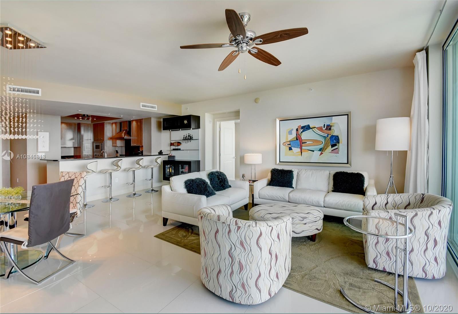 A luxurious condo with stunning Ocean, Intracoastal and City views. This sky residence is offered fully furnished and features a European designer kitchen with high-end Viking® SS appliances, Poggenpohl® cabinetry, and granite countertops. This residence boasts an enormous 48' balcony facing the Intracoastal waterway where you will enjoy breathtaking sunsets. The Plaza at Oceanside offers some of the best amenities you will find anywhere and is located just steps away from the beach! Complimentary daily continental breakfast is included at the building’s News Cafe. This condos casual ambiance is like no other in Pompano Beach. It is truly extraordinary!