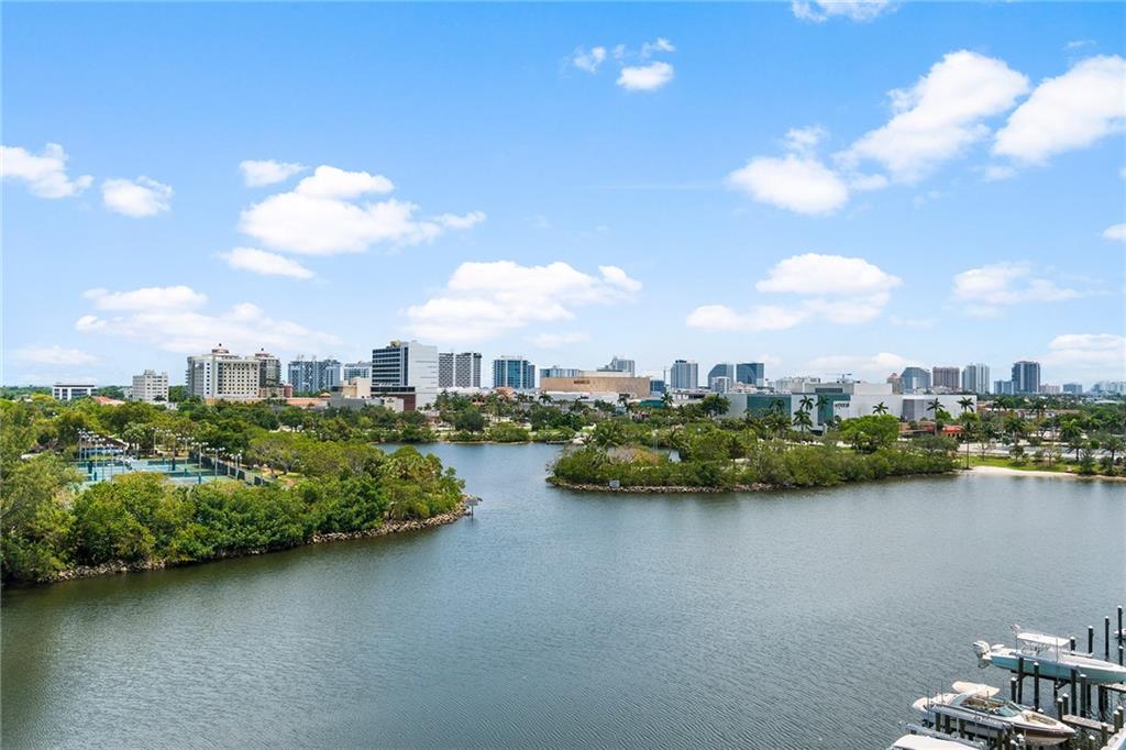 Owner bought from the developer "designer ready" and full of owner upgrades. Spacious light filled flow through unit with semi private elevator and private foyer, two huge terraces & great views of The Middle River, Downtown and the ocean. Wonderful master suite with oversized shower, dual sinks, double closets and ocean views. Open kitchen with Wolf gas cooktop and Italian cabinetry, Sub-Zero refrigerator, wine cooler and pantry. Private storage unit is also included + private golf locker ! Plus 2 assigned parking spaces #103 & 104. Seller motivated.