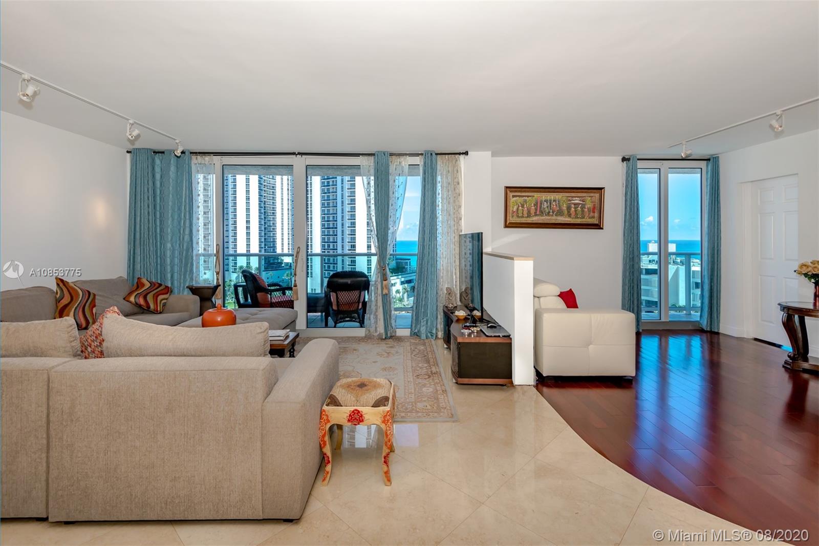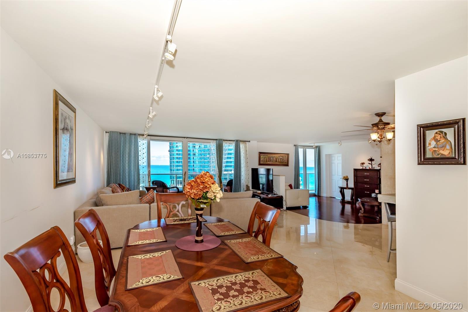 Spectacular direct open ocean view, and Haulover Park, Elegant, and bright 2 bedroom made into one spacious one Bedroom, 2 full bathrooms, Easily converted back into a 2 bedroom, open, and completed renovated art deco kitchen, marble floor in dining and living room, wood floor in master bedroom, building offer resort style amenities including 2 tennis courts, 2 gyms, great large pool, 24 hr valet and concierge service. building is right across ocean, minutes from Aventura and Bal Harbor. Near dining, shopping, entertainment, airports. A MUST SEE!!