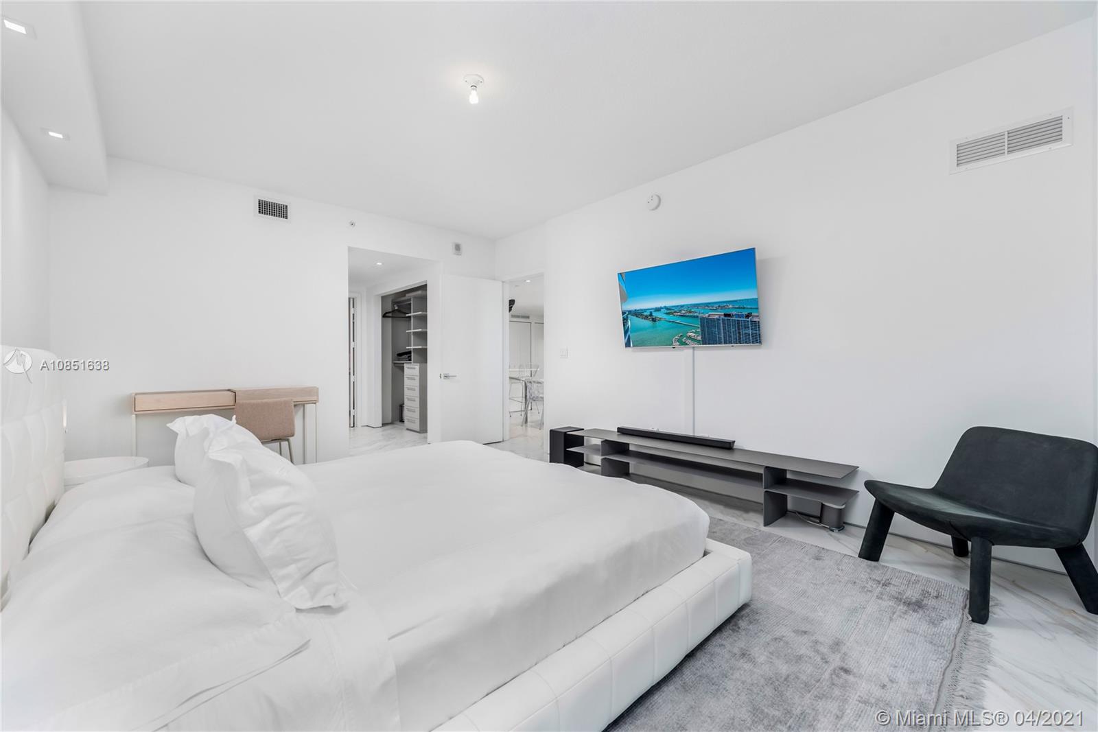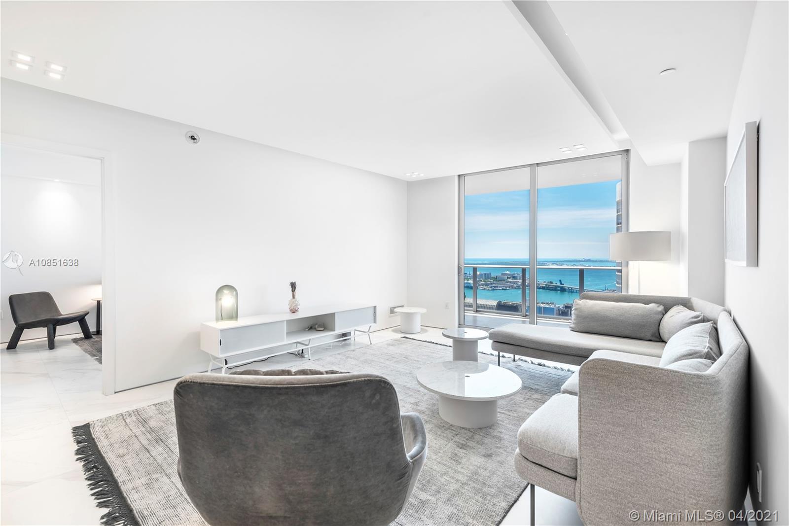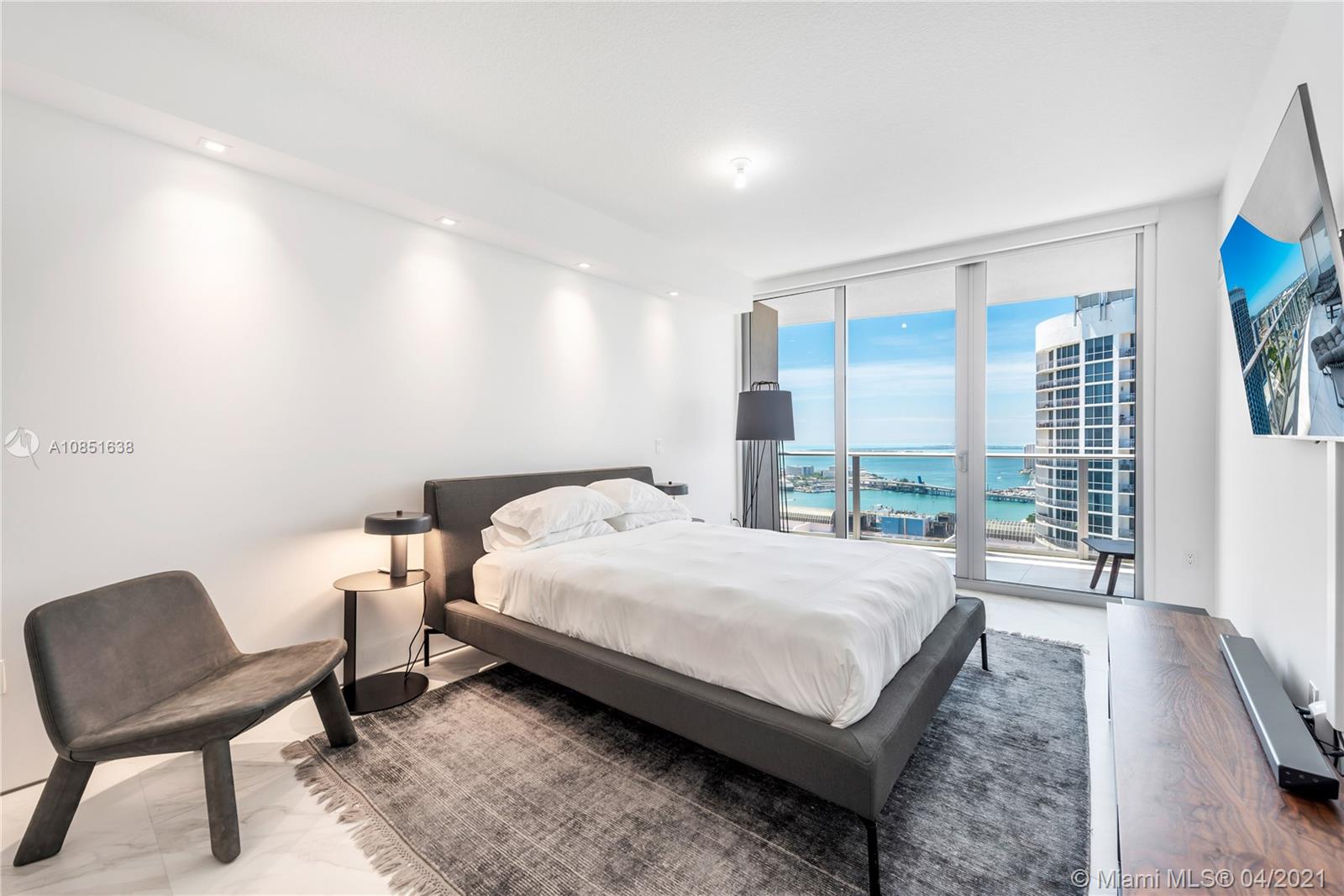 Bask in magnificent water views from every corner of this unit on the 'o8 line at Aria on the Bay, the most sought after building in the heart of Edgewater located directly across from Margaret Pace Park! This ultra chic turnkey unit w/private elevator which opens up directly to your foyer. Custom walk in closets w/built-ins, custom shower, floor to ceiling impact sliding doors with electric shades. Marble flooring, hanging ceilings with recessed dimmable lighting throughout. Italkraft cabinets in the kitchen with high tech appliances & quartz countertops. SQFT w/Balcony is 1539. Great location w/easy access to all entertainment districts & transportation (Airport and major expressways). Live Lavishly w/impressive resort-style amenities and exceptional staff!