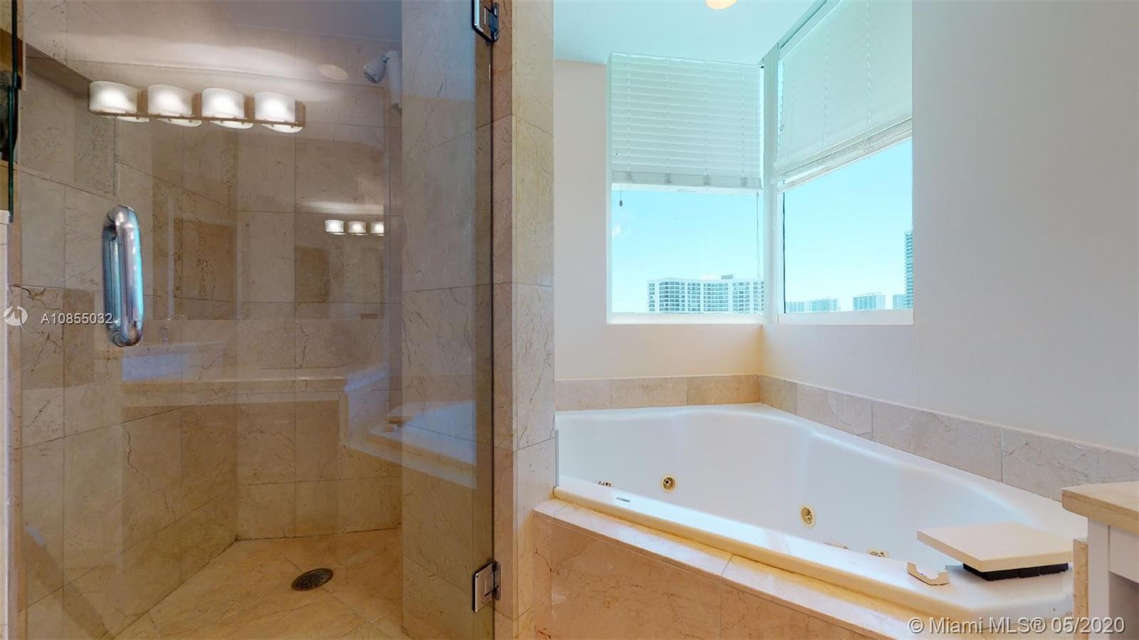 LOCATION, LOCATION, LOCATION. THIS LUXURY BUILDING IS IN THE HEART OF AVENTURA. SOUGHT AFTER MODEL UNIT FEATURING CORNER UNIT WITH THE LARGEST FLOOR PLAN, 3 BEDROOMS AND 3 FULL BATHS. DOUBLE DOOR ENTRY TO PRIVATE FOYER DIRECTLY FROM YOUR ELEVATOR. KITCHEN APPOINTED WITH ITALIAN CABINETRY & STAINLESS STEEL APPLIANCES. LIGHT AND BRIGHT FEEL WITH FLOOR TO CEILING HIGH IMPACT GLASS IN LIVING AREAS AND BEDROOMS. SPACIOUS MASTER BATHROOM COMPLETE WITH BIDET AND SEPARATE TUB AND SHOWER. THIS GEM HAS BEEN PROFESSIONALLY DECORATED AND ALL FURNISHINGS ARE NEGOTIABLE. WONDERFUL AMENITIES INCLUDE RESORT STYLE POOL AREA, FULLY EQUIPPED GYM, SECURED LOBBY, AND 2 PARKING SPACES. HOUSE OF WORSHIP WITHIN STEPS FROM YOUR FRONT DOOR. BEACHES AND AVENTURA MALL WITHIN WALKING DISTANCE.