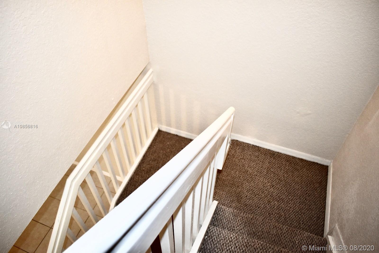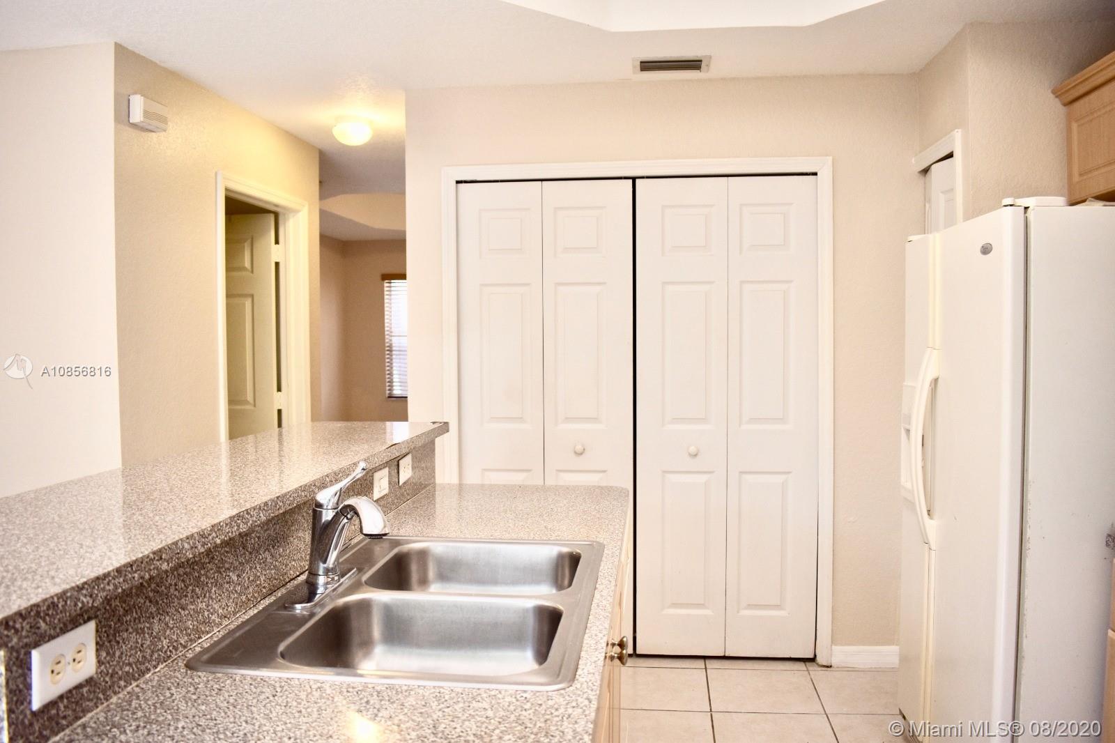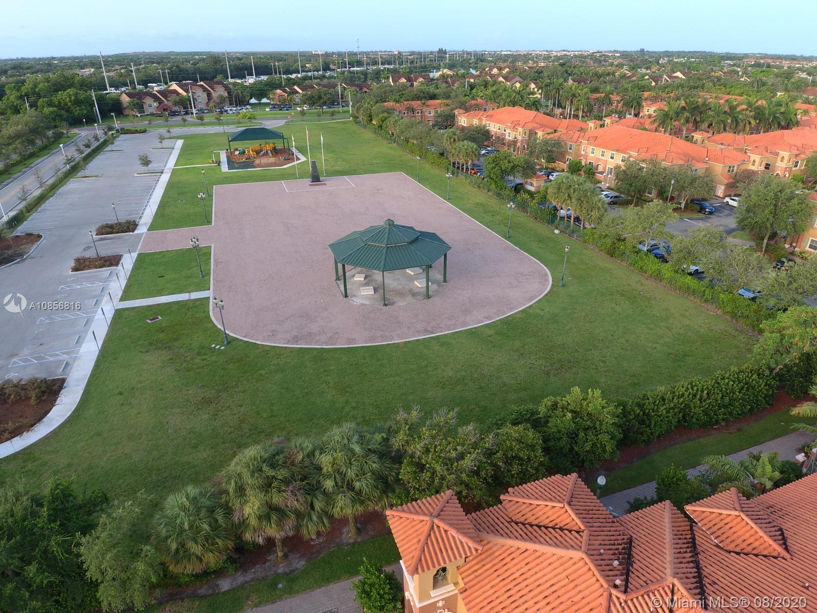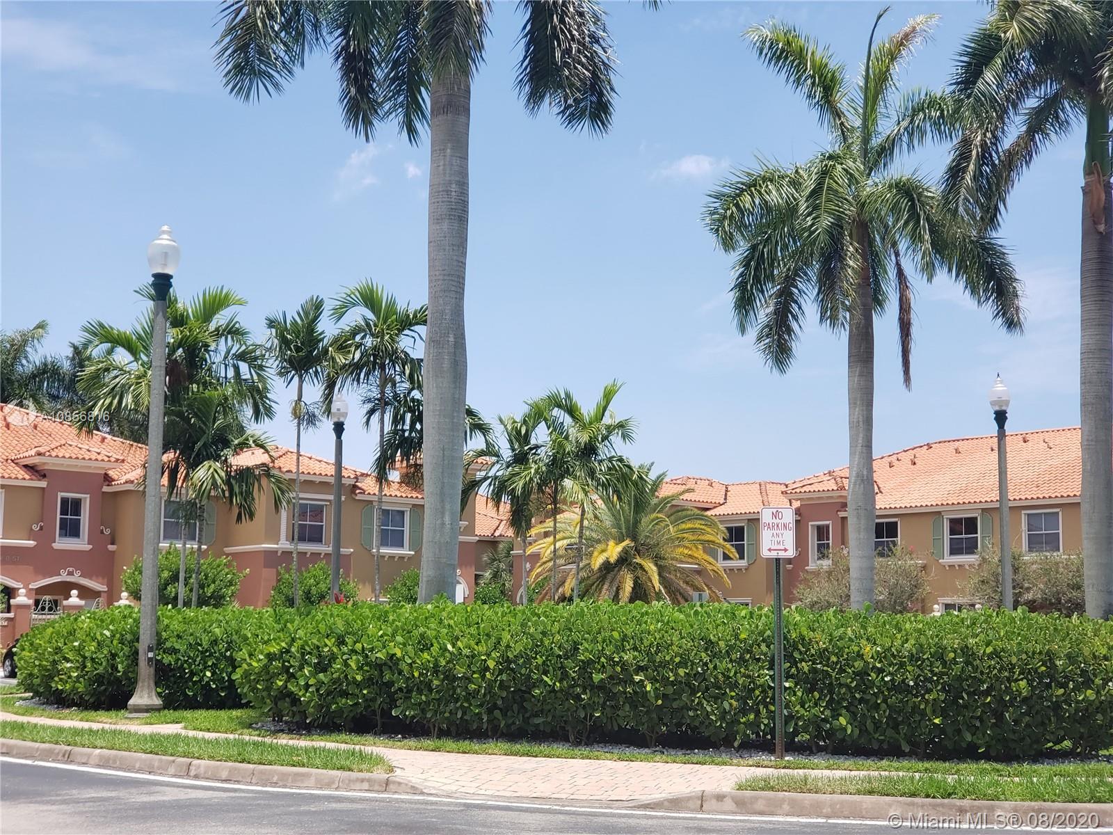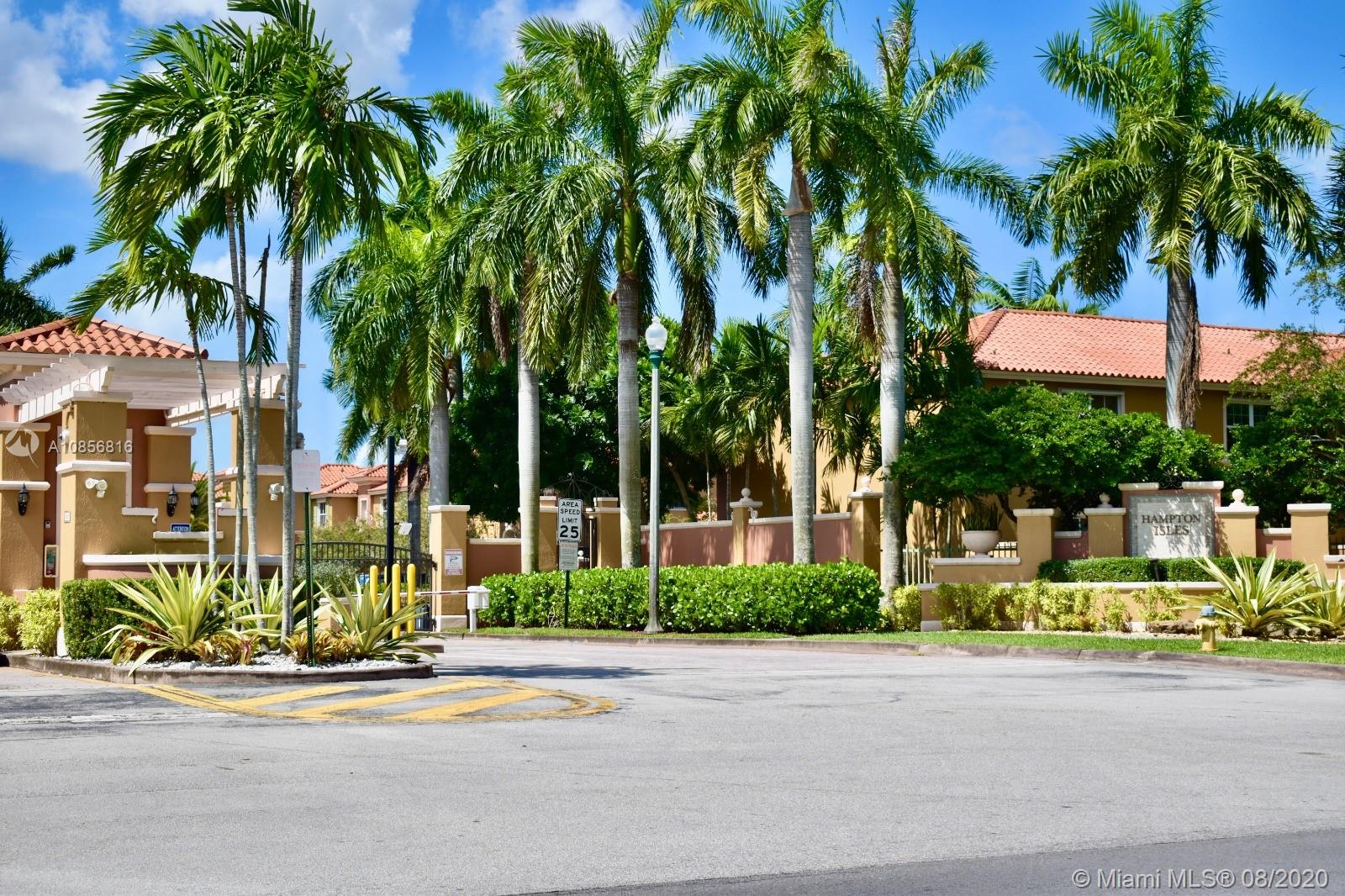 In gated Mediterranean styled community. Ceramic tiles downstairs, with Berber carpet upstairs thru to landing bedrooms & closets. This model has two (2) Master Suites upstairs, split bedroom plan. Both with walk in closets. Includes a laundry closet with full sized washer & dryer. Spacious brick paved patio in back to relax and entertain, or for children to play. Walk to pool over looking lake view. This unit is walking distance to the new City Center, and shopping, close to gym, restaurants & Pembroke Lakes mall. Comes with fitted hurricane panels. Association requires each person 18+ to have credit scores of at least 650. Park in #304 there are two reserved spots.