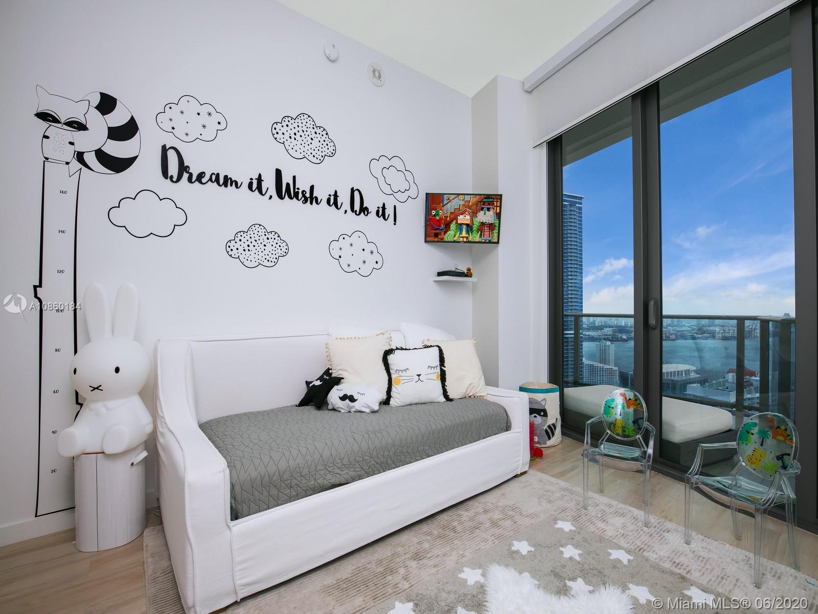 Enjoy breathtaking Bay and City views from this unit located at SLS Brickell. The unit has been tastefully finished & has 3 Bedrooms + DEN, 3.5 Baths, it features top-of-the-line Bosch and Subzero appliances, ceramic wood-like flooring throughout, 10-ff ceilings, floor-to-ceiling windows, gourmet kitchen with marble countertops, custom closets in all bedrooms, and a spacious master bedroom. SLS Brickell offers its residents a number of lavish amenities, including a state-of-the-art fitness center; rooftop pool with city and water views; full-service spa; pool terrace with 200 foot-long heated pool, private cabanas, and al fresco dining; full-service concierge; Kids room; party room; and on-site fine-dining restaurants by Michael Schwartz and Jose Andres. Unit comes with 2 parking spaces.
