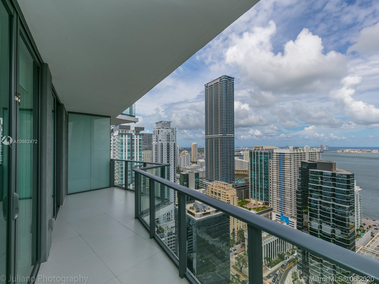 1 Bedroom + Den / 2 Bathrooms. Unit features panoramic views of the Miami skyline, bay and ocean. Title floors, European kitchen with top of the line appliances. Luxurious amenities include rooftop pool, spa, fitness center, multiple pools and more. Excellent location. Parking located at 8th floor. Tenant occupied. 24 hour notice. Paying $3,000 with 60 days vacate clause.