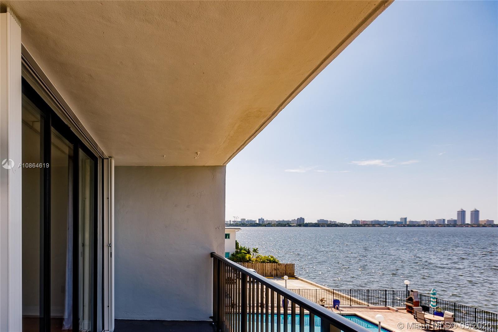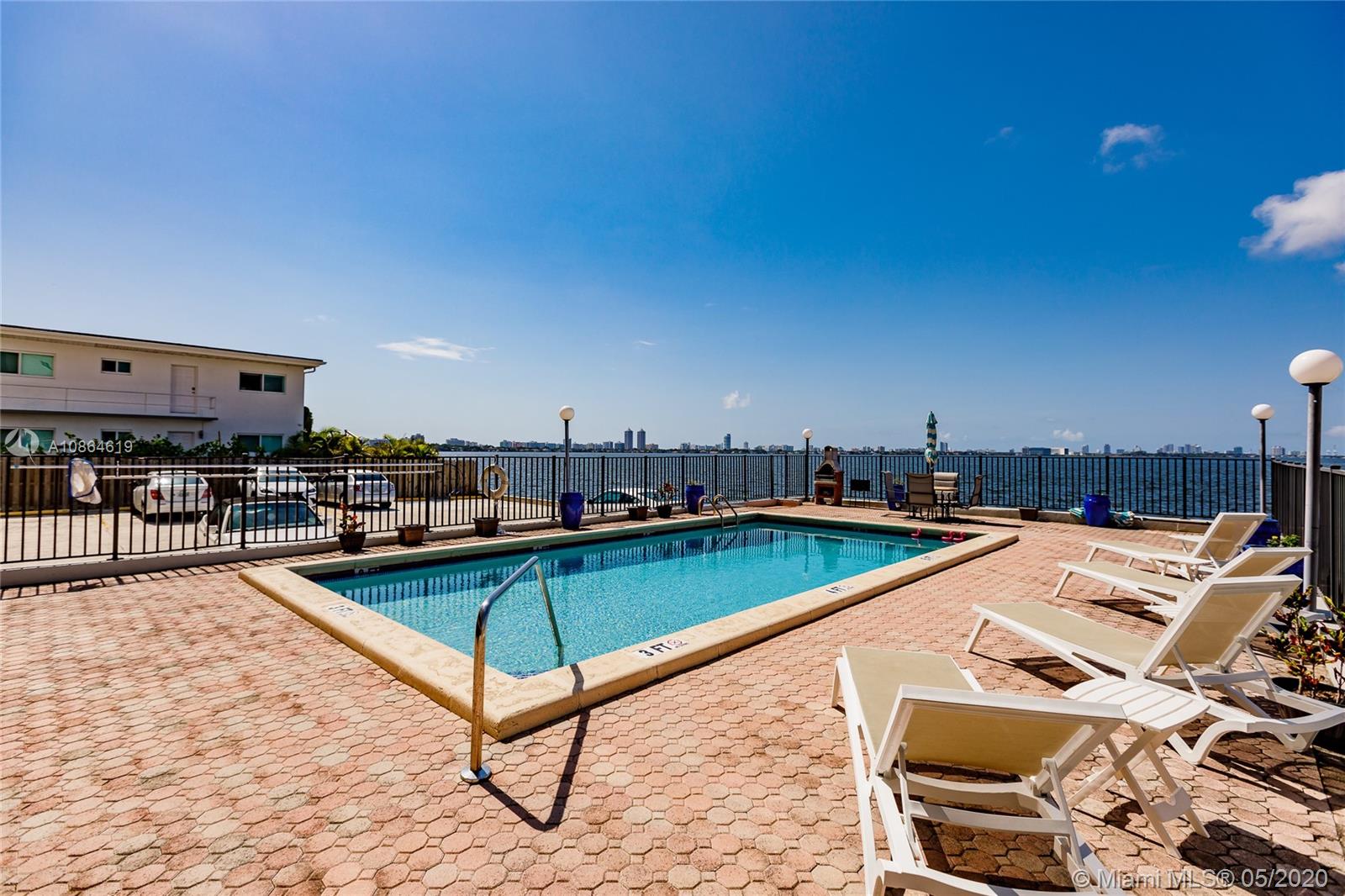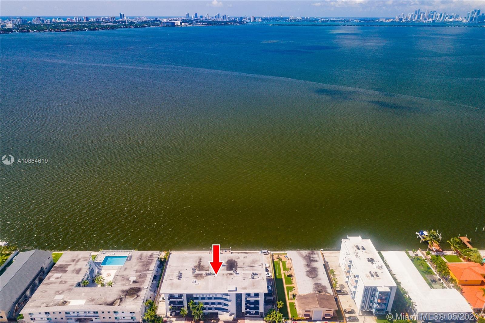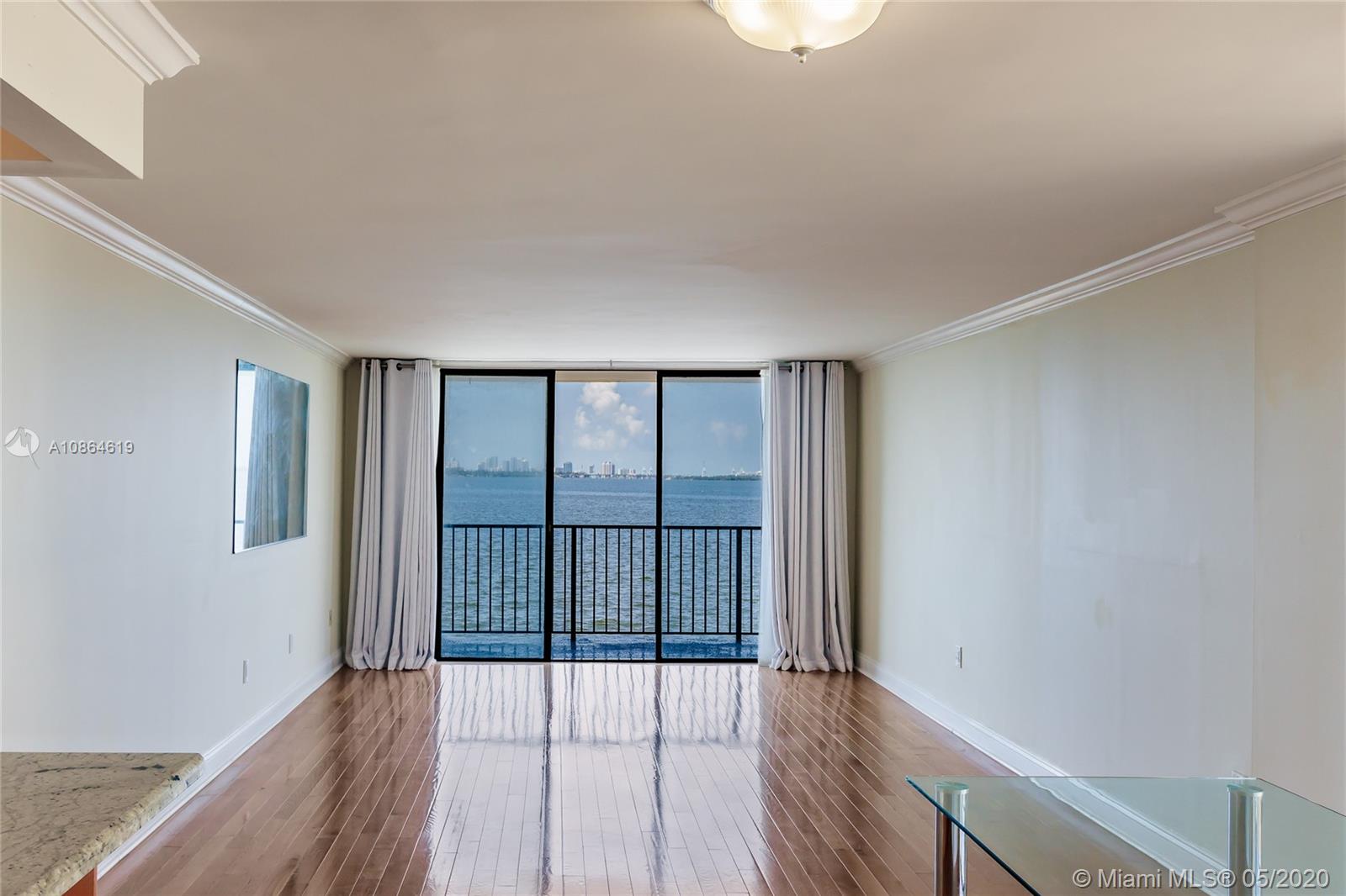 Wake up every morning to this MILLION DOLLAR VIEW of the Miami Skyline! Situated in a wonderful neighborhood and quiet street, this spacious 2/2 waterfront corner unit condo with breathtaking views on either side features real hardwood floors and crown molding throughout its 1,240 ft2 of living area. Large master bedroom with walk-in closet and built out cabinetry. The kitchen was tastefully done with real hardwood cabinets and granite countertops. Washer/dryer in-unit, 3 balconies, complete accordion shutters installed 2019, and 2 assigned parking spaces within the secured garage.