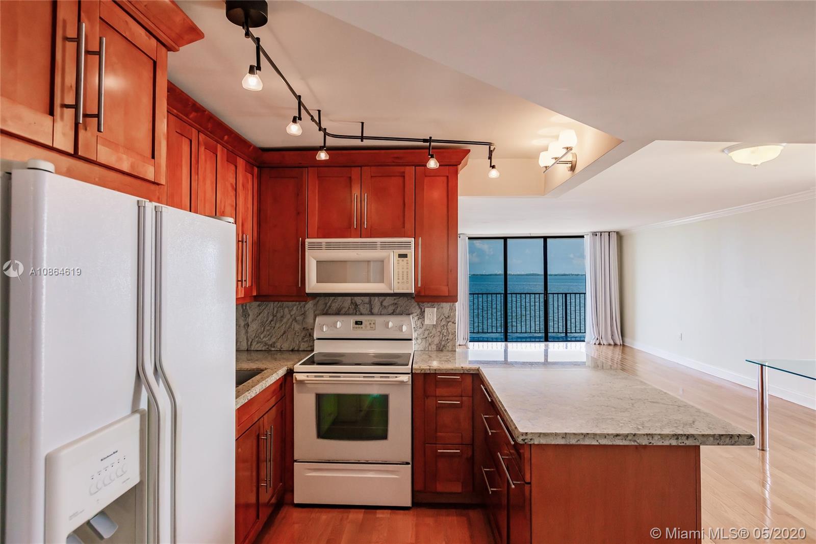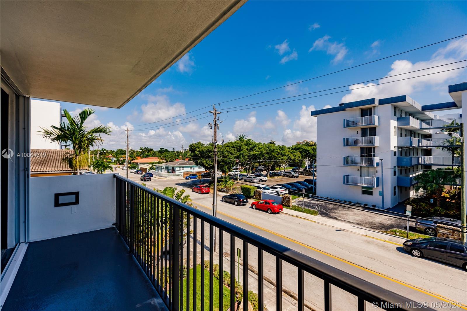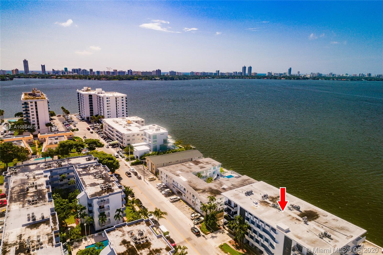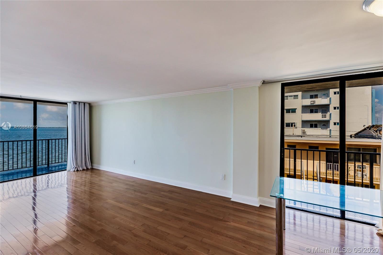 Wake up every morning to this MILLION DOLLAR VIEW of the Miami Skyline! Situated in a wonderful neighborhood and quiet street, this spacious 2/2 waterfront corner unit condo with breathtaking views on either side features real hardwood floors and crown molding throughout its 1,240 ft2 of living area. Large master bedroom with walk-in closet and built out cabinetry. The kitchen was tastefully done with real hardwood cabinets and granite countertops. Washer/dryer in-unit, 3 balconies, complete accordion shutters installed 2019, and 2 assigned parking spaces within the secured garage.