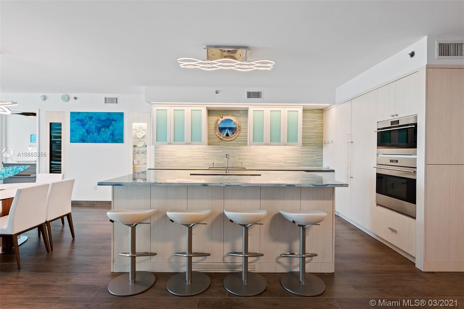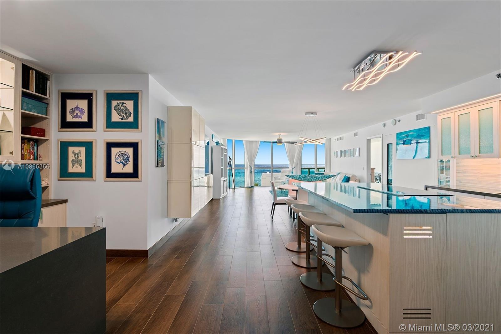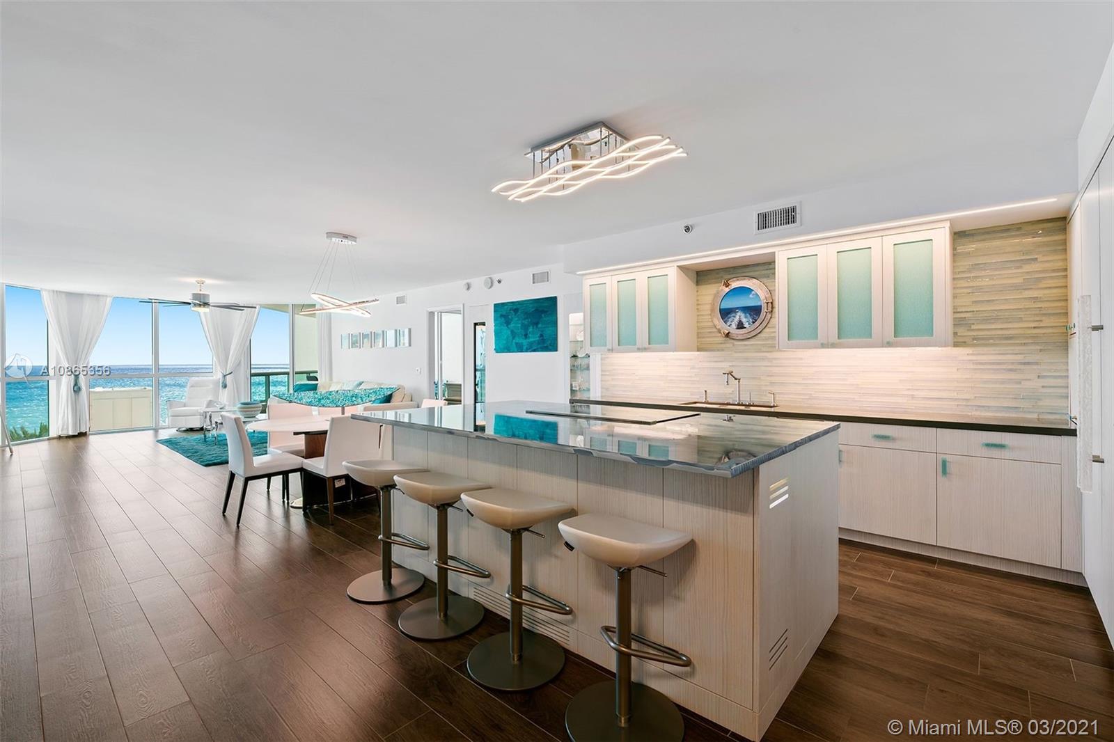 Turn-key & Move in ready! Take a semi-private elevator to a private foyer & enter a completely re-imagined, coastal inspired residence. Over half a million dollars spent thoughtfully & beautifully recreating this oceanfront home. Details include: Designer wood grain tile throughout living areas & bamboo flooring in bedrooms. Kitchen centerpiece is massive 56" x 94" Island with custom "Ribbon Glass" top & Cabinetry with innovative storage. Wolf Convection Oven, Steam Oven, & Induction Cook-top. Sub Zero panel refrigerator & Freezer, & Sub Zero 59 bottle panel wine cooler. Breathtaking ocean views from living room & master bedroom. Master bath has a one of a kind "Beach" walk-in shower, Kohler Real Rain showerhead & Kohler Papion cast stone soaking tub.