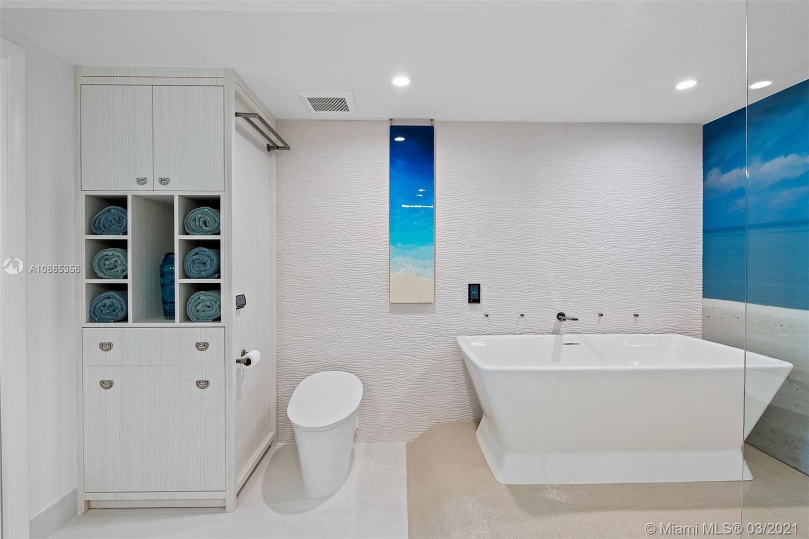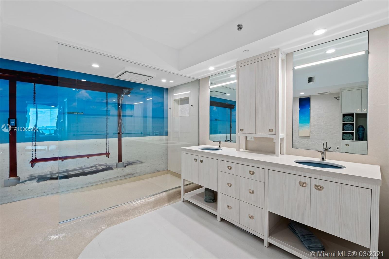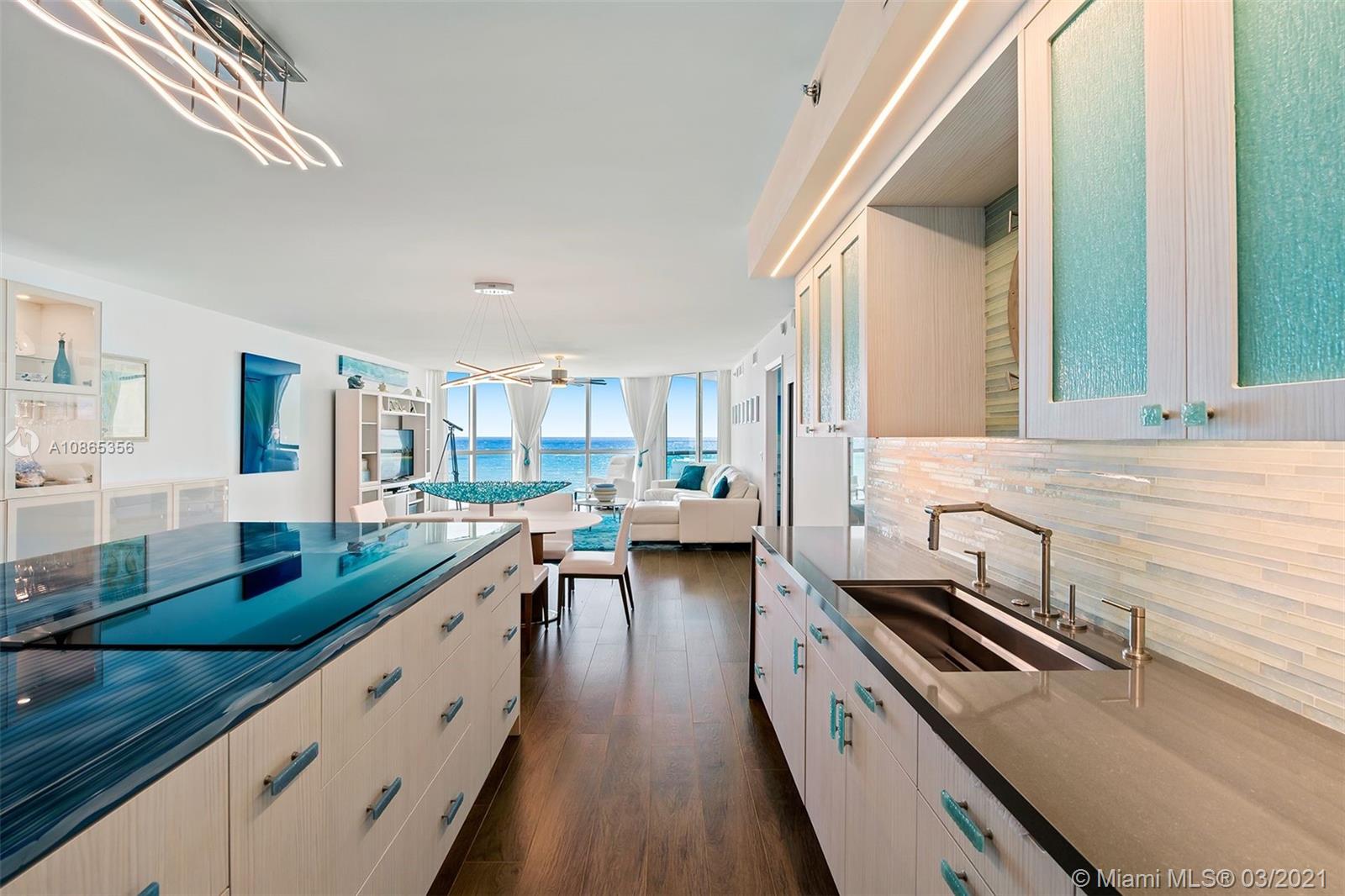 Turn-key & Move in ready! Take a semi-private elevator to a private foyer & enter a completely re-imagined, coastal inspired residence. Over half a million dollars spent thoughtfully & beautifully recreating this oceanfront home. Details include: Designer wood grain tile throughout living areas & bamboo flooring in bedrooms. Kitchen centerpiece is massive 56" x 94" Island with custom "Ribbon Glass" top & Cabinetry with innovative storage. Wolf Convection Oven, Steam Oven, & Induction Cook-top. Sub Zero panel refrigerator & Freezer, & Sub Zero 59 bottle panel wine cooler. Breathtaking ocean views from living room & master bedroom. Master bath has a one of a kind "Beach" walk-in shower, Kohler Real Rain showerhead & Kohler Papion cast stone soaking tub.