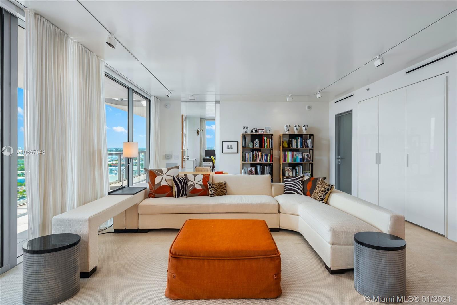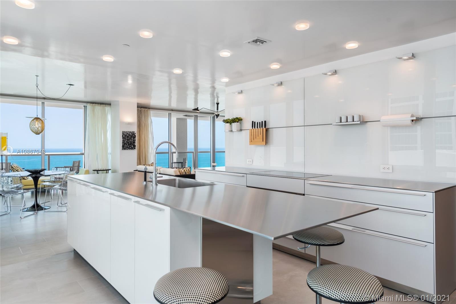 Perfectly curated & customized, flow-through NE corner 4BR/4BA residence boasts 3,040 SF w/ breathtaking 180° East to West–sunrise/sunset–views of the ocean & city skyline. Only adjoined Penthouse at Carillon offering combined terraces running the full length of the unit on either side. Stunning high-end features: Bulthaup kitchen, recessed lighting, Lutron, Cappadocia porcelain tile, Poliform closets, Italian TrePiu glass panels w/ aluminum profiles & Philiipe Starck bathroom sinks custom made for Duravit w/ Dornbracht fixtures. Master suite offers spa like bath & opens up to the eastern terrace. Enjoy Carillon's incredible amenities; 750ft beachfront, 70,000 SF gym w/ weekly classes, spa, 4 pools, restaurant & hotel..