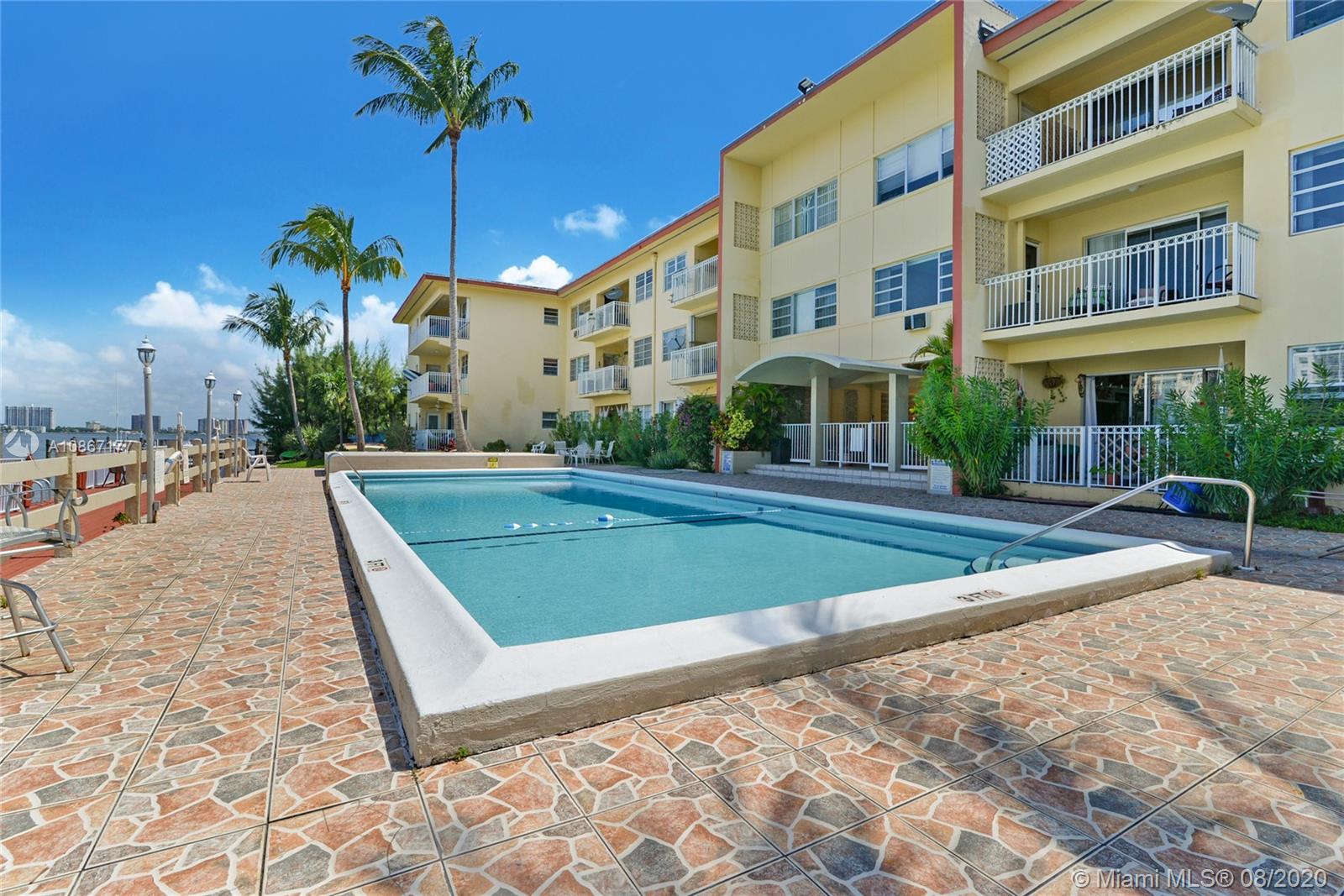 Bayfront building with great water views! Renovated kitchen, tile floors, and ample closet space. Spacious corner unit on the first floor. Large 902 SQ FT 1 bedroom 1 bath with low maintenance fees. 1 assigned parking space & guest parking. Enjoy the relaxing pool and sundeck looking out over the bay along with a boat dock. Private living with only 36 units in the building. This rarely available condo is located at the end of a cut-de-sac for peace and privacy. This waterfront building is one of North Bay Village’s hidden treasures! Easy access to shopping, restaurants, beaches, and causeway.