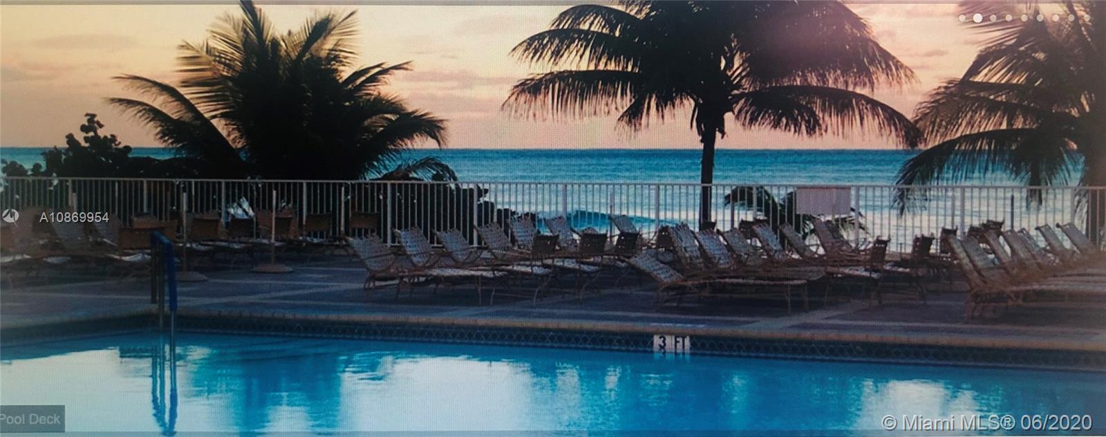 Oceanfront Condo nestle between Fort Laud. & Miami. Impeccable large furnished unit with eat in kitchen, walk in closet, build in bar, lots of closet space, large balcony, serene ocean view. Unique living experience, on 17 Acres of prime real estate between the Ocean and Intercostal, 2 restaurants, snack bar, 2 pools, tennis courts, putting greens, driving cage, basketball courts, 2 toddler pools, hair salon, marina and more. Ok to lease. Maintenance includes, electric, cable, internet, ac maintenance and more. Everything in place, furniture, utensils, bedding..just move in!. Price to sell!