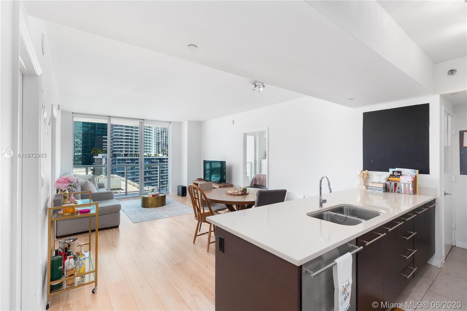 3D VIRTUAL TOUR (Link Below). Spectacular 2BR, 2Bath 1,124SF condo at 500 Brickell (East Tower) has direct North facing views & floor-to-ceiling sliding windows & direct balcony access from every room! Unit features a spacious split floor-plan, large bedrooms (BOTH with ensuite & walk-in closets); open concept kitchen, living/dining rooms, SS appliances, BRAND-NEW W/D (full size - front loading), BRAND-NEW AC UNIT, NEW top quality laminate wood floors. Outstanding amenities, including 24-hour concierge & valet parking, 2 Pools rooftop & sundeck on 11th floor w/poolside cabanas, fitness center, sauna & steam rooms, sports room w/billiards table & kitchen, wine cellar, club room & theater room. 3D VIRTUAL TOUR available!
