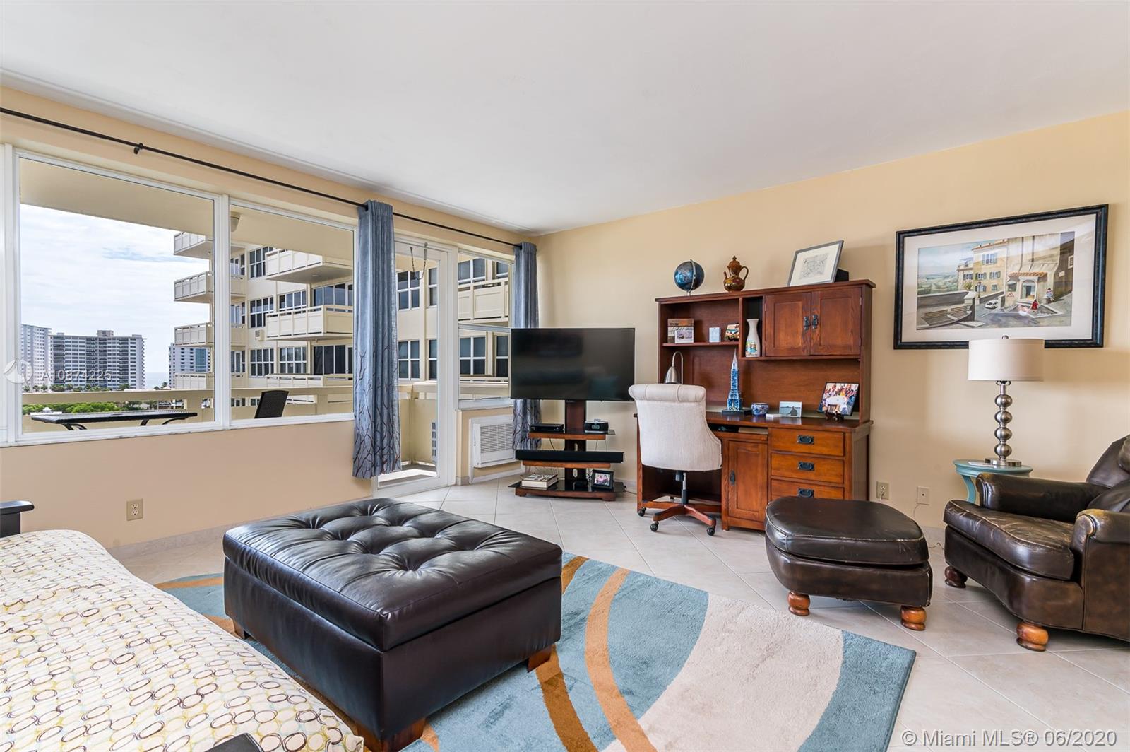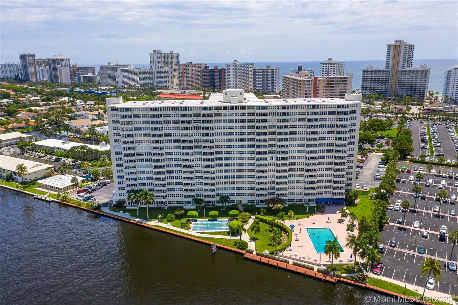 Amazing intracoastal & ocean views! Watch the boats go by while relaxing in this extremely spacious 1 bed, 1 bath residence located in the prestigious Coral Ridge towers. Remodeled kitchen features granite countertops, tile backsplash, stainless steel appliances, & an open concept with a breakfast bar. All windows & doors are hurricane impact resistant. Tile flooring throughout all the main living areas & carpeting in the bedroom. Conveniently located near many shops, restaurants, & walking distance to the beach! Coral Ridge offers a ton of amenities which include a heated pool, recreation room, fitness center, shuffleboard, BBQ area, 24-hour security, car vacuum, & a library! 55+ community - no renting & no pets. Association requires a minimum of 50% down.