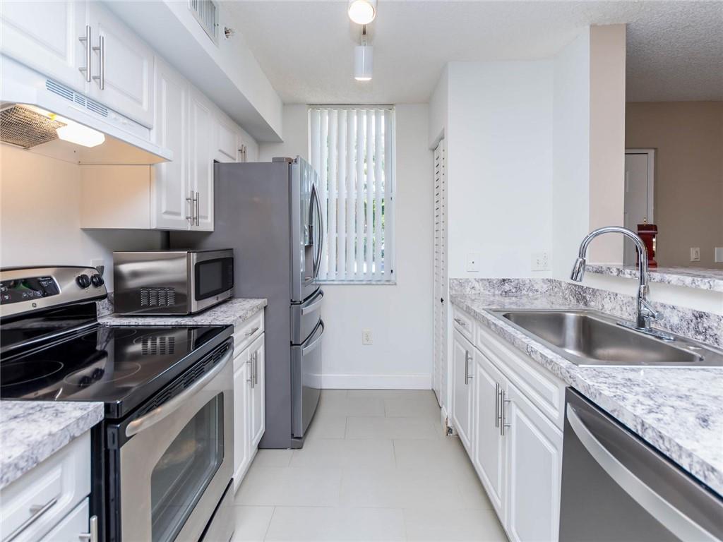 TRULY MOVE IN CONDITION CORNER UNIT. CERTAINLY MUST SEE PICTURES & VIRTUAL TOUR. NEW KITCHEN 12/19 W/STAINLESS STEEL APPLIANCES, FRENCH DOOR REFRIGERATOR W/SEPARATE VEGETABLE/CRISPER DRAWER, PANTRY, BREAKFAST BAR W/ROOM FOR 4 STOOLS, BIG DEEP 33"X22" SINK, WALL TAKEN DOWN SO COMPLETELY OPEN TO LIVING ROOM/DINING AREA. ALL FLOORS 12X24 ALTERNATING TILE 2015. ALL 5" BASE BOARDS. 12X12 LIVING ROOM W/SLIDING GLASS DOORS TO 10X6 ROOFED PATIO. 13X11 MASTER BEDROOM W/WALK IN CLOSET. 10X11 2ND BEDROOM. AC UNIT 2015. WATER HEATER 2018. ROOF 2018. DADE COUNTY APPROVED PANELS-COMPLETE HURRICANE PROTECTION/INSURANCE DISCOUNT. EXCEPTIONALLY WELL MAINTAINED COMMUNITY-CLUBHOUSE/3 LAKES/24-HOUR GATE/POOL/COVERED SPA/CABANA/TOT LOT/INDOOR RACQUET BALL COURT/VOLLEYBALL COURT/2 TENNIS COURTS/BUSINESS CENTER.