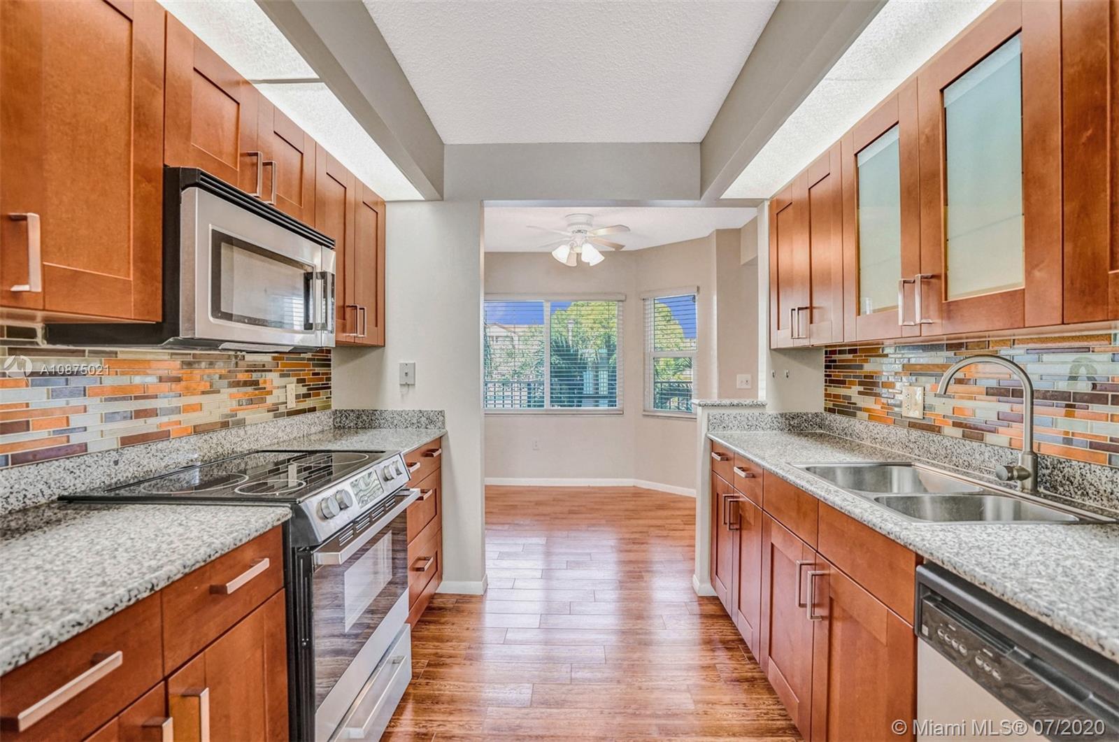 WOW! Completely Updated KARANDA model with high-quality finishes and Impacted window/ doors throughout. Enjoy amazing lake and sunset views from your private patio. The home features a custom kitchen with wood cabinets, granite counters, glass backsplash, and stainless-steel appliances. Wood Look Ceramic Tile and ceiling fans throughout. Both bathrooms have also been updated with custom finished. Two walk-in closets, master bedroom closet was built out by the Container Store. Newer A/C in and out. All closet doors have been replaced. Titan tankless water heater. Oversized washer/ dryer. The patio screen was recently replaced. Clubhouse right across the big lake. The pool is right in front of the building. Located in Century Village of Pembroke Pines.