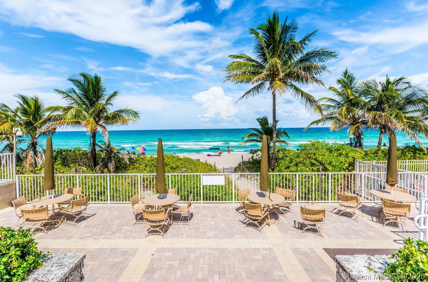 1 BR 1.5 BATHS OCEAN NORTH* FACING SOUTH. GREAT OCEAN AND POOL VIEW! MOST DESIRABLE LOCATION AND VIEWS! WARM, SUNNY EXP. GREAT TERRACE FOR SUN BATHING,RELAXING,OR JUST ENJOYING LIFE ON THE BEACH! MAINT INC A/C,CABLE,HOT WATER,PARKING,24HR SECURITY, PLUS MORE2 POOLS, BEACH SERVICE, 2 REST'S, SNACK BAR,2 GYMS,TENNIS,BBQ,DOCKS,SALON, CONV STORE,BASKETBALL,GREAT COMPLEX FOR FULL TIME OR VACATION LIVING. MAINTENANCE A/C,CABLE,HOT WATER, PARKING, 24 HR SECURITY AND MORE! GREAT FRIENDLY COMPLEX. 2 POOLS, BEACH SERVICE, 2 REST'S, SNACK BAR,2 GYMS,TENNIS,BBQ,BOAT DOCKS,SALON, CONV STORE, BILLIARDS,CARD,BASKETBALL, CLOSE TO ALL MAJOR SHOPPING AND HIGHWAYS . GREAT FOR FULL TIME OR VACATION LIVING