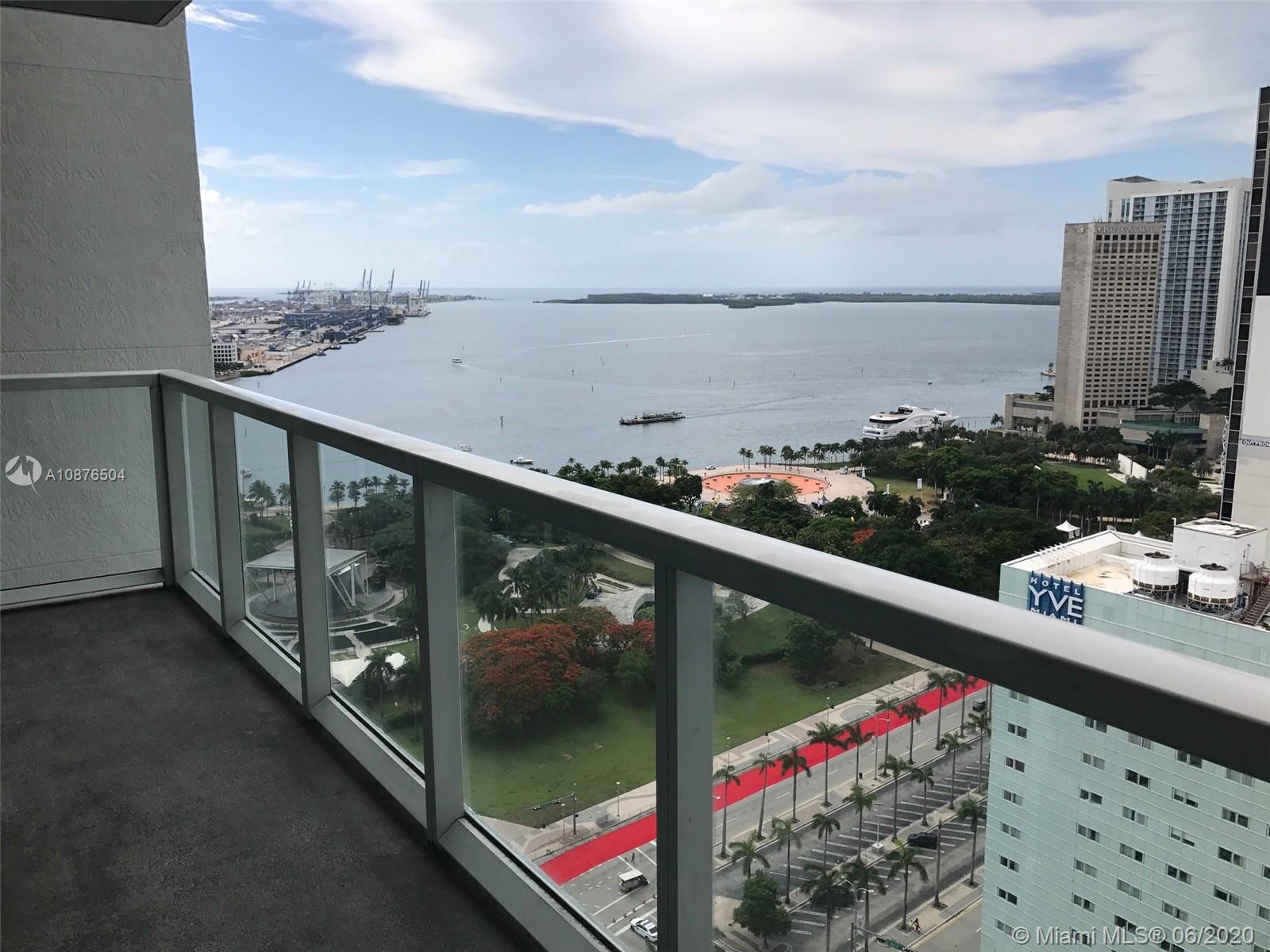 Located in the heart of desired downtown Miami. Luxury Building in Biscayne just across Bayside Marketplace. Interior Closets, blackouts and window treatments included. Fully equipped kitchen, Italian cabinetry, granite tops, Stainless Steel appliances, marble floors in bath, bathtub & glassed shower, included 1 storage unit. Near Miami Dade Collage, American Airlines Arena, Brickell. Reception lobby attendant, secured garage, business center, clubhouse, lounge, billiards, fitness, lockers, Spa & Wellness, sauna, steam, heated pools, sun deck, bar & grill, tropical landscaping & bay views.