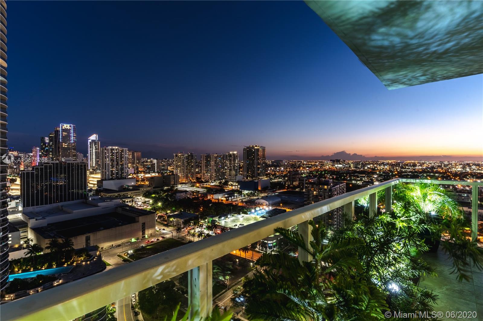 Breathtaking views from this beautifully designed 2/2 corner unit with a huge wraparound balcony. This highly upgraded ready to move in spacious unit with high ceilings & an open floor plan comes with an upgraded European kitchen, with Viking/ Mile stainless steel appliances, upgraded hardwood doors, high end lighting, custom cabinetry Min away from Miami Design District, Wynwood, American Airlines Arena, Perez Art Museum, Frost Science Museum, & Adrienne Arsht Center, Full service building with gym, 2 pools, cinema, business centers, social areas, Sauna Billiard & more amenities is walking distance to stores, shops, & Margaret Pace Park in front of the building. Do not miss this opportunity to live in the center of it all! SEE 3D tour https://my.matterport.com/show/?m=6bPZ3J69NJa