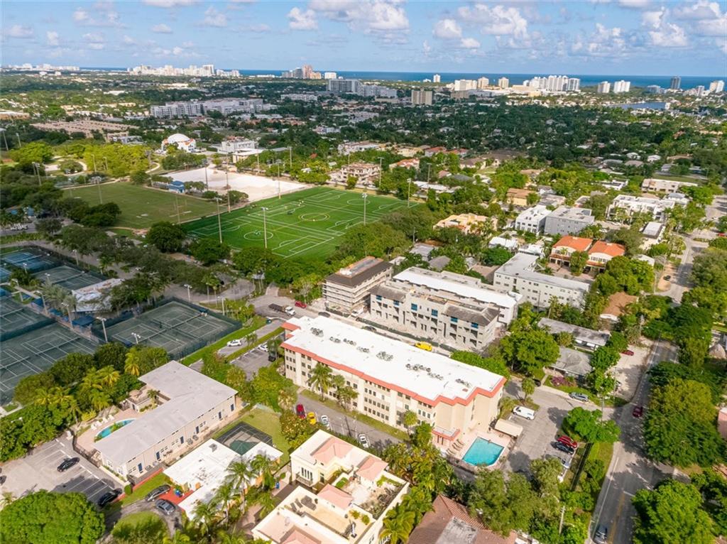 East of Downtown about a mile to the beach. Victoria Park's boutique park side condominium. Situated on a quiet cut-de-sac at Holiday Park and only steps to the tennis center. This well maintained 3rd Floor SE corner apartment offers an ideal split floor plan with updated kitchen granite counter tops and hardwood cabinetry, recent appliances and a pass-through Breakfast bar. Updated baths, a Master with walk-in closet, a formal dining area and impact windows and reasonable maintenance make this the ideal place to call home. Only 43 units total in this four story building with heated pool, covered terrace and barbecue area too. Minutes to Las Olas Bouldevard, restaurants, shopping and the beach!