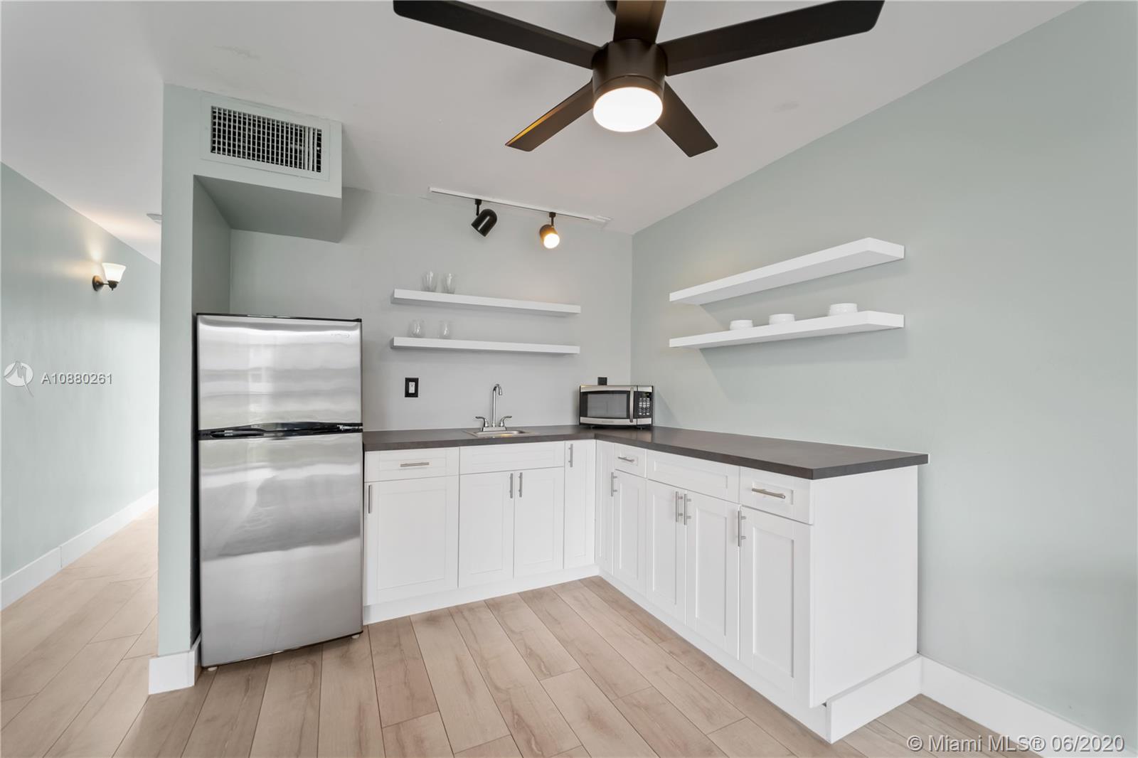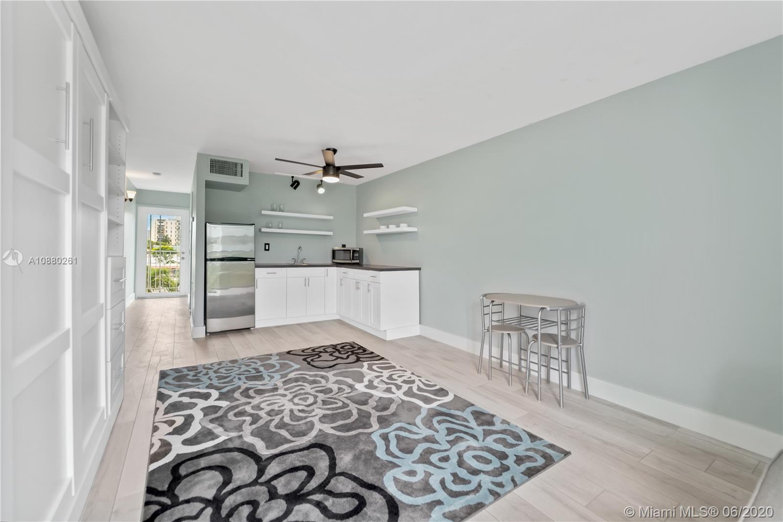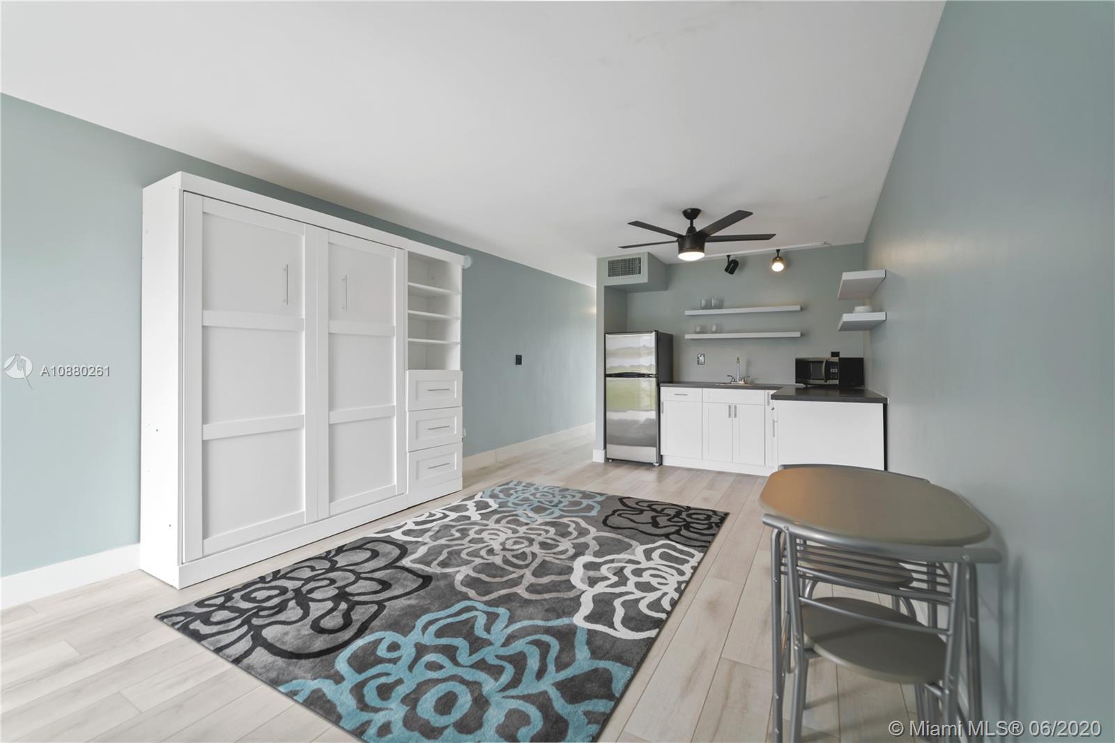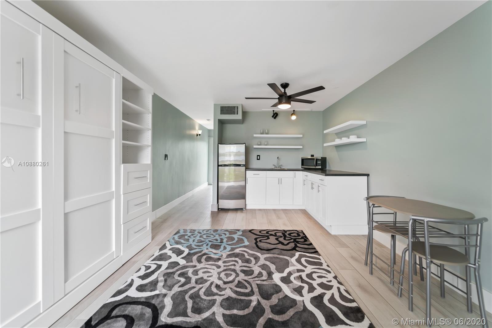 Completely remodeled studio apartment in the heart of South Beach. Steps away from Lincoln Road and Alton Road. New kitchen cabinets, refrigerator and microwave. New wood laminate floors. New built in murphy bed with additional shelving and cabinetry for added storage. New closet shelving. Bathroom is also completely remodeled with shower and glass shower doors. New tank-less water heater. Impact windows and doors. Freshly painted. Gated parking space underneath the building for a compact car. Enjoy everything South Beach has to offer just steps away from your front door including world class shopping, restaurants and nightlife. 1 mile from Ocean Drive.