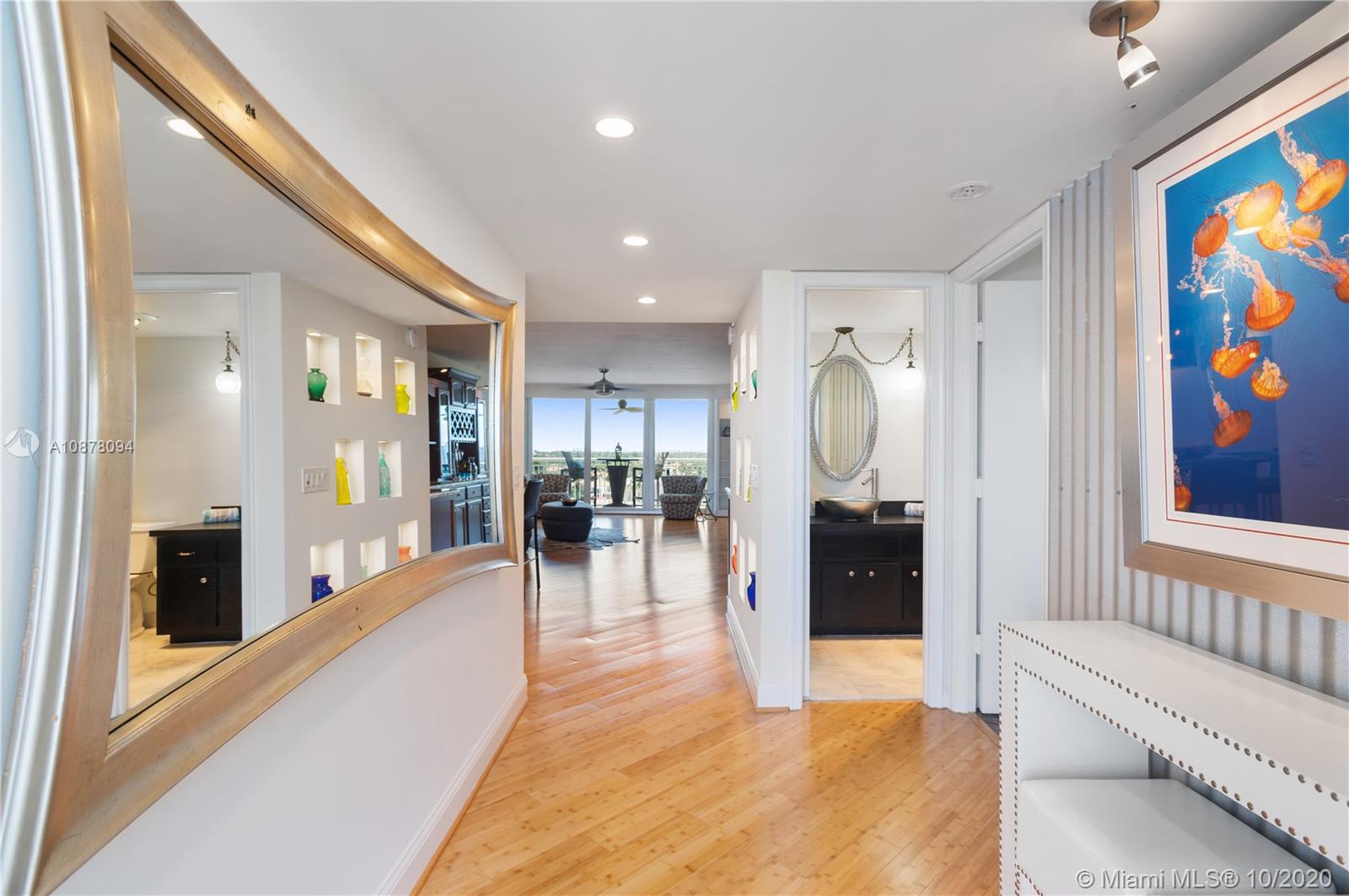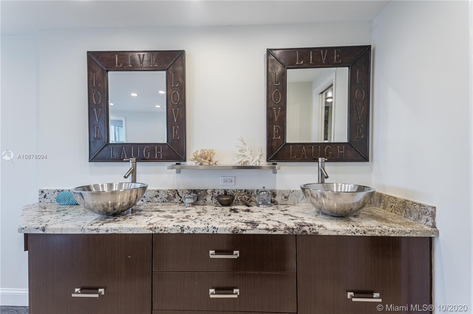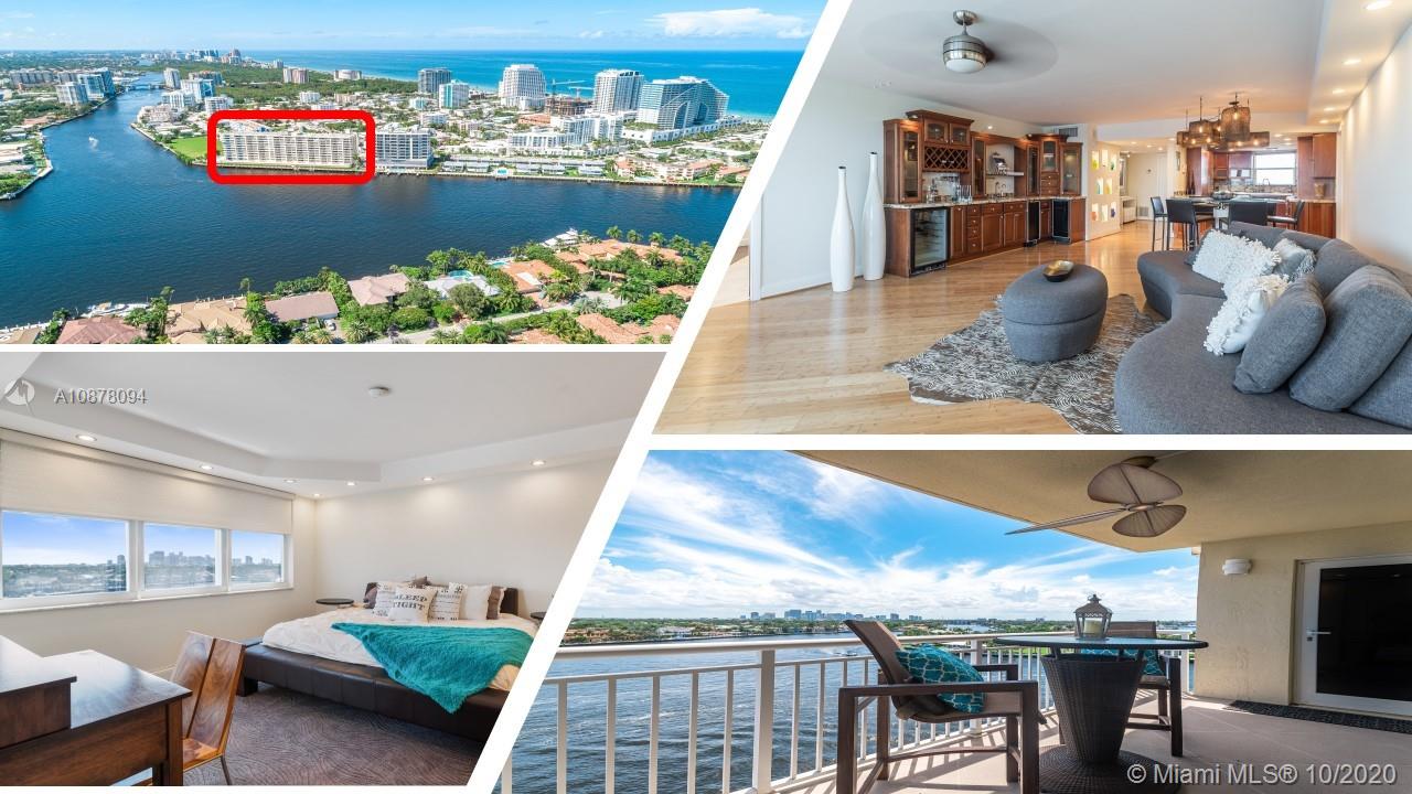 MOTIVATED SELLER-HUGE REDUCTION Million $ water views at fraction of price. Hidden intracoastal gem, 1705SF 3BR redone as 2BR + office w/bed, 3BA , coveted center stack! Front row Boat Show from balcony. Entertain in style w/built-in wet bar, wine & bev fridges & ice maker. Chef's L-shaped kitchen w/double ovens, HUGE Kohler sink, 2 dishwashers, custom cabs for mixers, spices, pots & pans. Master suite has breathtaking views, 2 walk-in closets, frameless jetted shower, 2 sinks & balcony access. Reno added more closets, larger kitchen & full size W/D laundry in unit. Impact windows. Built-ins. Deeded storage room. Blocks to beach w/ocean views from entrance & front BR. 1YR warranty. Assessments paid. Pool/Gym/Billiars/Community Room w/kitchen/Rooftop Deck w/kitchen & lounge/1 garage spot