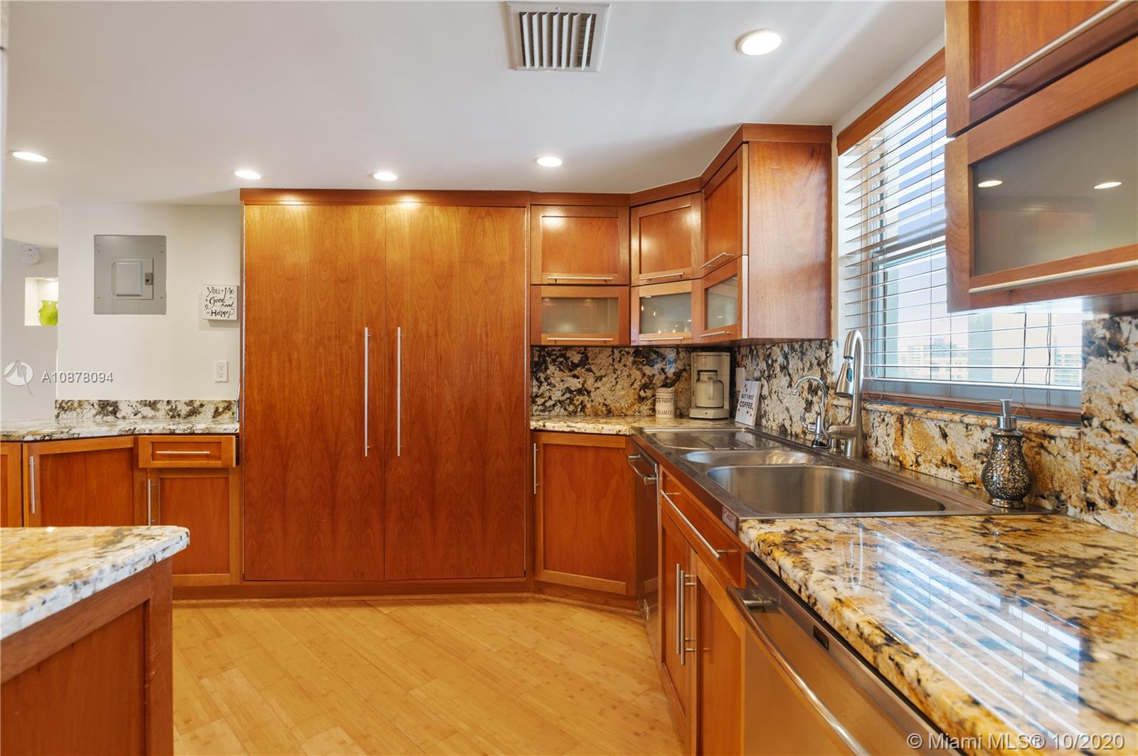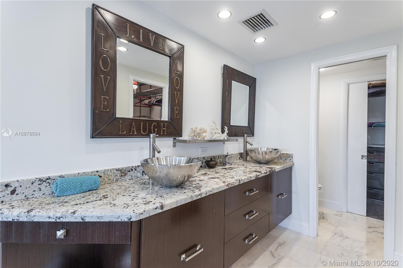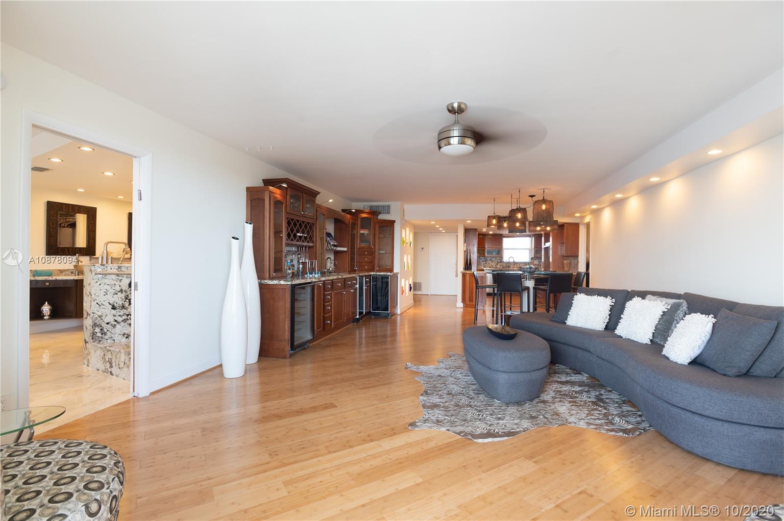 MOTIVATED SELLER-HUGE REDUCTION Million $ water views at fraction of price. Hidden intracoastal gem, 1705SF 3BR redone as 2BR + office w/bed, 3BA , coveted center stack! Front row Boat Show from balcony. Entertain in style w/built-in wet bar, wine & bev fridges & ice maker. Chef's L-shaped kitchen w/double ovens, HUGE Kohler sink, 2 dishwashers, custom cabs for mixers, spices, pots & pans. Master suite has breathtaking views, 2 walk-in closets, frameless jetted shower, 2 sinks & balcony access. Reno added more closets, larger kitchen & full size W/D laundry in unit. Impact windows. Built-ins. Deeded storage room. Blocks to beach w/ocean views from entrance & front BR. 1YR warranty. Assessments paid. Pool/Gym/Billiars/Community Room w/kitchen/Rooftop Deck w/kitchen & lounge/1 garage spot