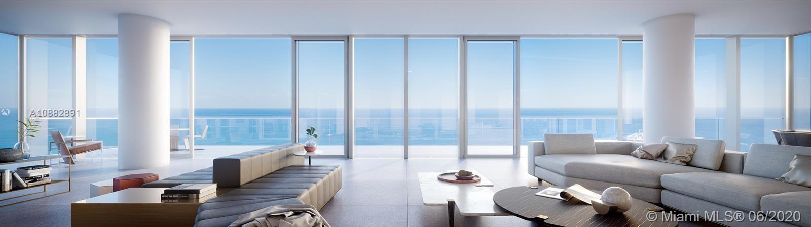 Luxury boutique property, with only 64 oceanfront residences located just North of Golden Beach. This contemporary 38 story glass tower showcases panoramic views of the Atlantic Ocean, Intracoastal Waterway. This half floor residence offers 180 degrees of Ocean, Intracoastal and city views. Every room has an incredible view in this 3 bed, 3.5 bath plus den unit with expansive terraces. Private elevator landings with facial recognition. Full amenity property with impeccable details by Minotti. There is truly nothing like it. Delivered by May 2021 Move-in Ready.