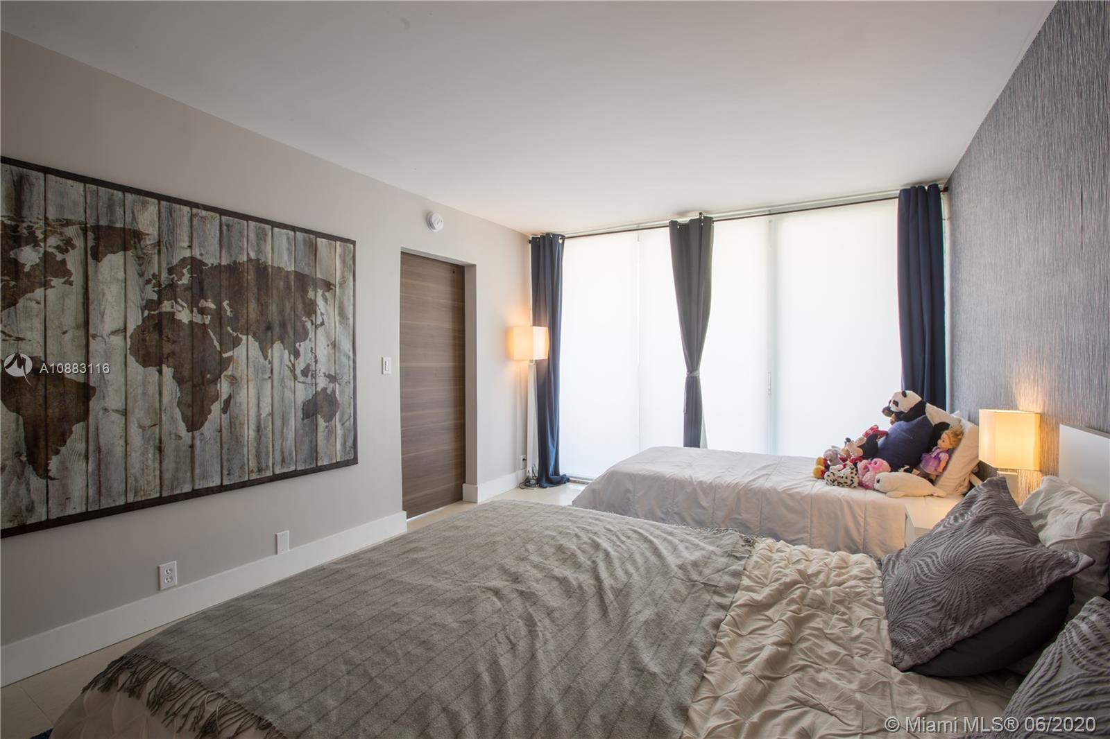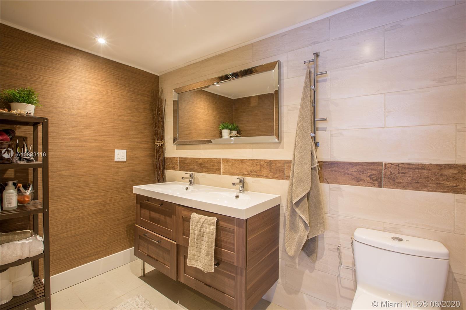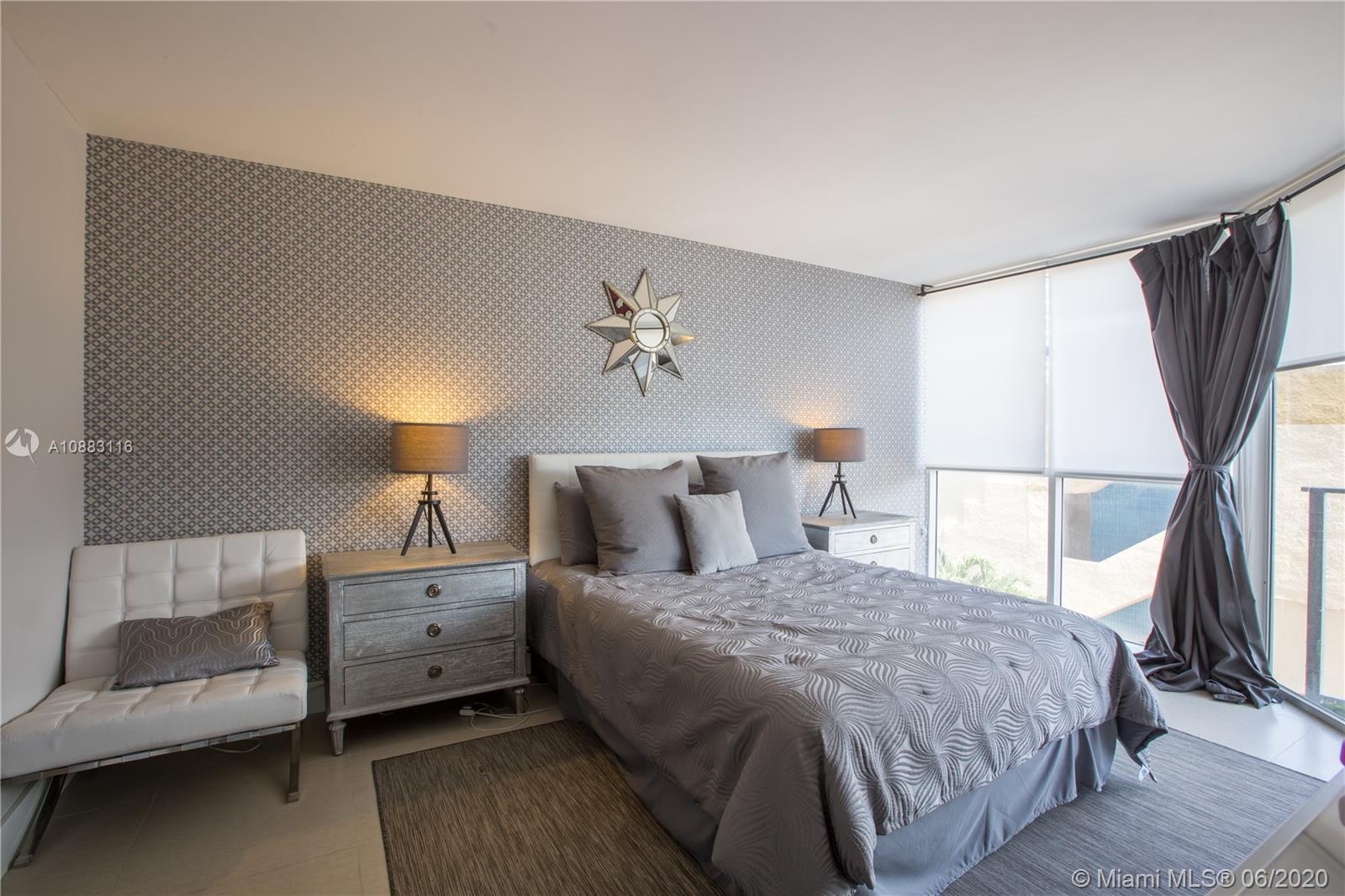 Unique opportunity! Totally remodeled 2/2 unit has been professionally decorated. No expense was spared on this immaculate interior! Italian porcelain floors, accent walls, barn doors, brand new SS appliances, open kitchen with granite counter tops, custom built closets, floor to ceiling windows, balcony, washer & dryer inside the unit! This is a waterfront building with marina. Amenities include 24 hour security, olympic sized pool, jacuzzi, gym, restaurant, beauty salon, and convenience store. Amazing location and less than 2 minutes from the beach. Easy access to I-95, Downtown Miami and Airports.