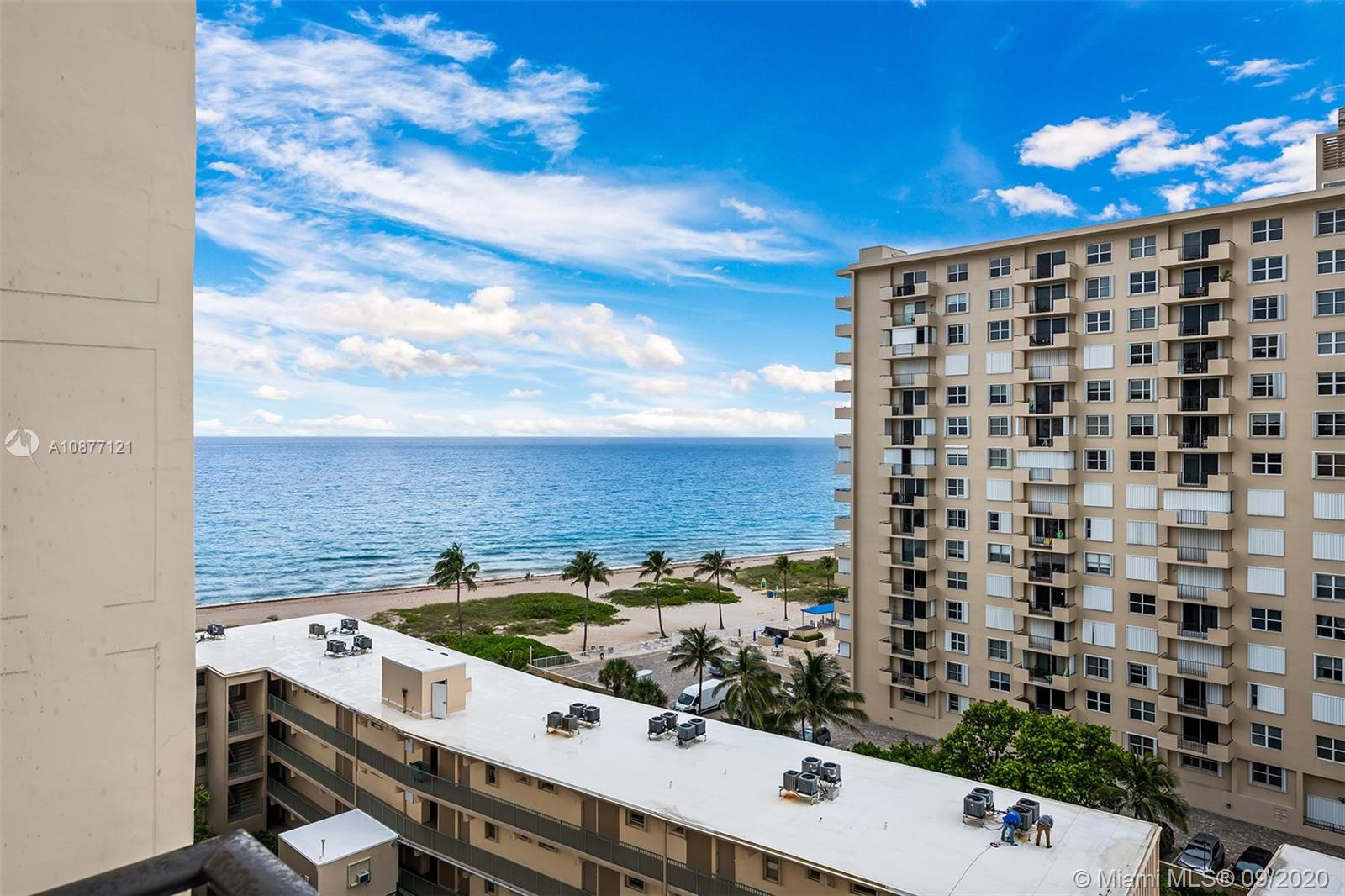 Corner unit directly on the sand in Lauderdale By The Sea. Large balcony. Intracoastal, city and ocean views from balcony, living & dining areas. Bathrooms & kitchen upgraded. Granite counters, stainless appliances, large walk-in master closet with custom cabinetry, Plantation shutters and crown moulding throughout. Easy to maneuver hurricane shutters on windows & sliders. Open living with lots of storage. Maintenance includes A/C, heat, water, cable & insurance. 24/7 security. Fitness center, social room w/catering kitchen, billiards, theatre, library, bbq's, sauna & large heated pool. Lots of semi private beach. Pets are welcomed at Ocean Place. Easy to rent. Conveniently located - walking distance to shops, restaurants, and local activities. Close to downtown and Las Olas Blvd.