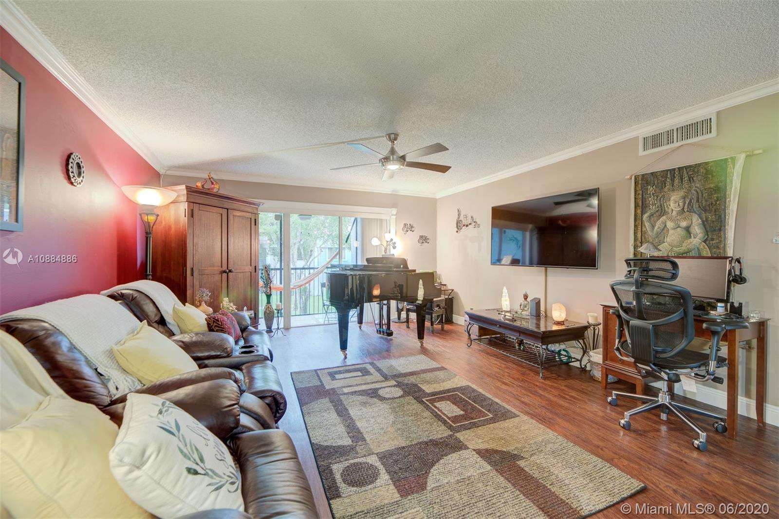 Tastefully upgraded, open concept 2 bedrooms 2 baths condo unit with full inside washer and dryer, located in the most desirable area of Weston. Upgrades features; newer kitchen with granite counter tops, newer bathrooms, toilets & vanities, newer wood floors & doors and crown molding throughout. Convenient tankless water heater less than 3 years old, A/C unit installed on 2015, Accordion Hurricane Shutters. Association payment includes water, roof repairs and community resort style amenities such as fitness center, two swimming pools, Tennis, Basketball Courts and so much more. Near beautiful Botaniko. Walking distance to the Golf Course. OK to lease the first year. Priced to Sell! Please wear masks and remove shoes when entering property.