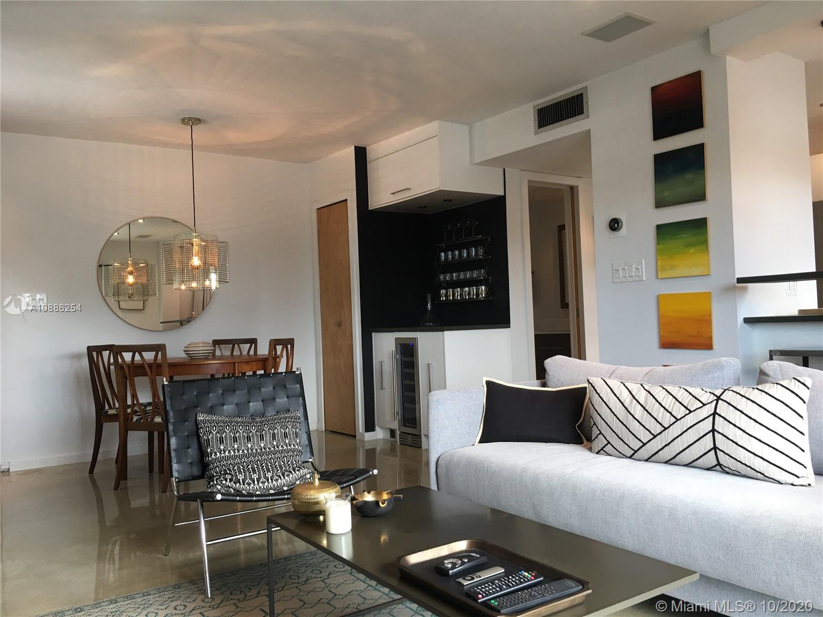 Fully Furnished Elegant Newly Renovated 1 bedroom 1 1/2 bath W/GARAGE PARKING Fantastic Chef Kitchen All New Stainless Appliances Beautiful Polished Cement Floors New Washer and Dryer New Central AC Unit with WIFI connection to NEST climate control system. Dining area has glass front wine refrigerator. Minutes from the Beach and Shopping. You Must See