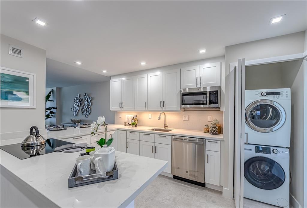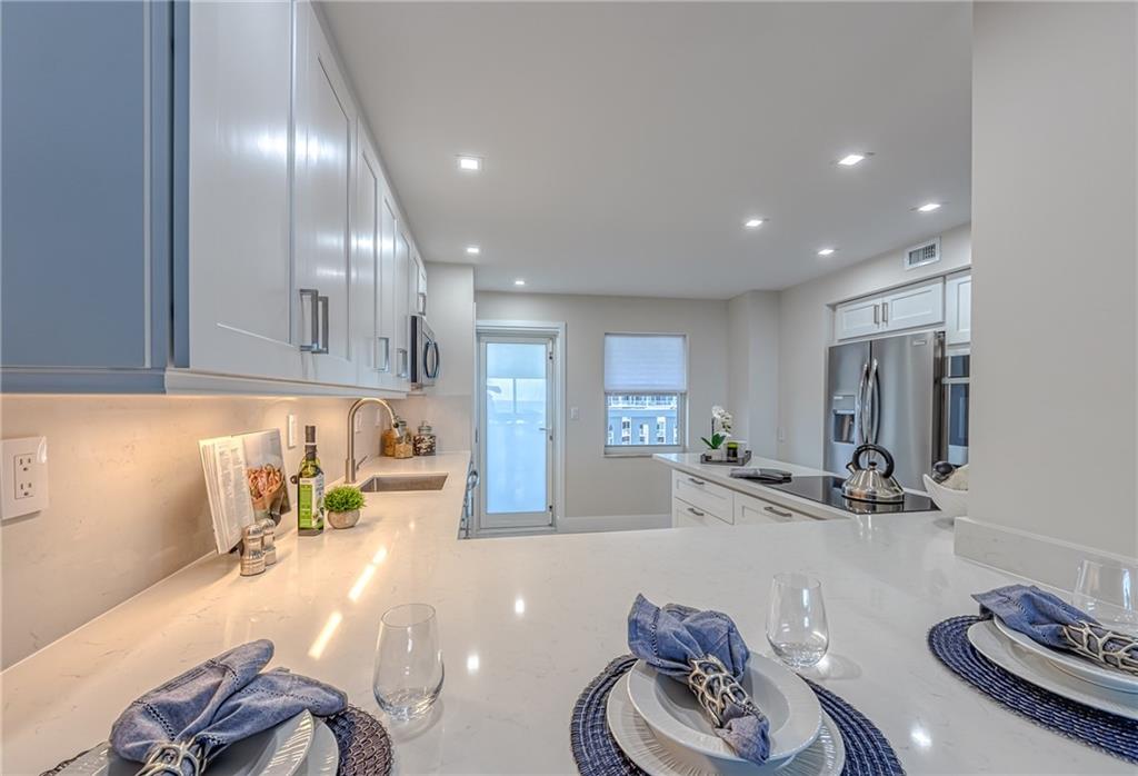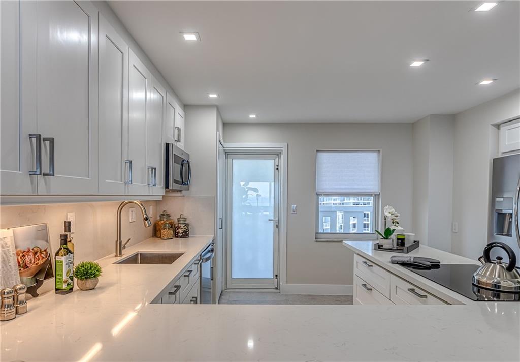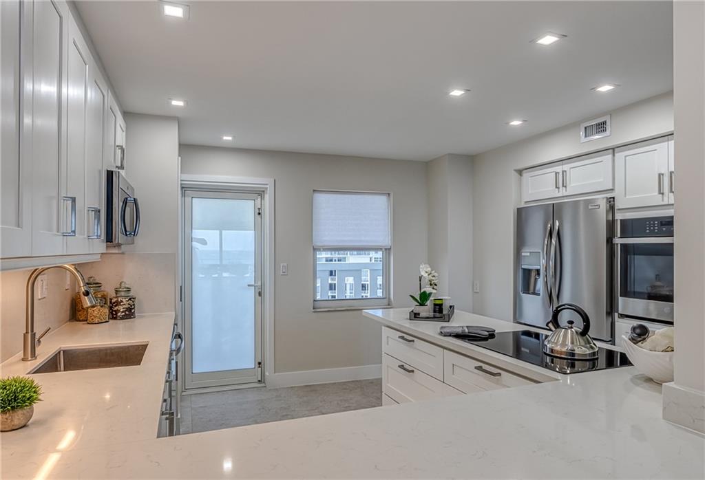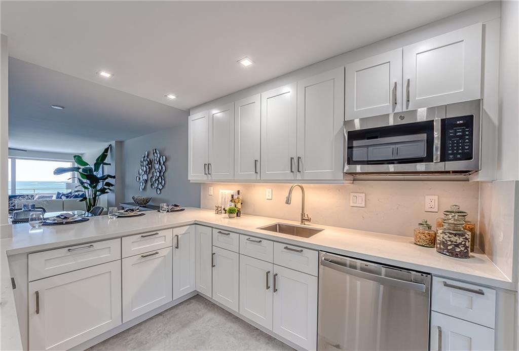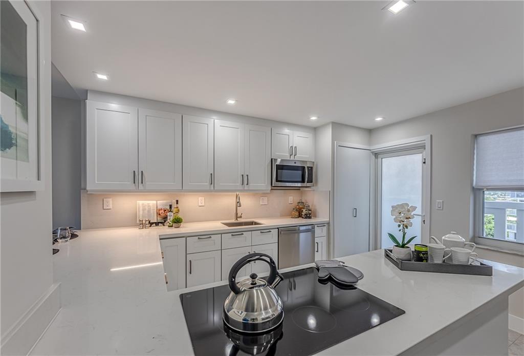 HOT NEWLY REMODELED LISTING. Incredible Total Renovation. BEST PRICED 3 Bedroom w/2 Baths in Area. Gorgeous, Open, Designer Kitchen w/Built In Appliances, Custom Cabinets, Stunning Quartz & Ocean Views. 32" Porcelain Tile Thruout, Exquisite, Custom Baths, w/Vanity & Duel Sinks in Master. Impact, Floor to Ceiling Windows in Living and Master w/Sweeping Ocean Views & Access to Spacious Balcony. Rarely Available 3 Bedroom @ this Price. Great Location w/Beach Access + Private Beach Use in Secluded Neighborhood. Enjoy Tropical Breezes plus Passing Yachts & Cruise Ships Pass. 24 Hr Security, Heated Pool, Fitness Rm, New Community Rm, Sauna. Close Access to Airport, Virgin Express InterCity Rail, Shopping & Restaurants.