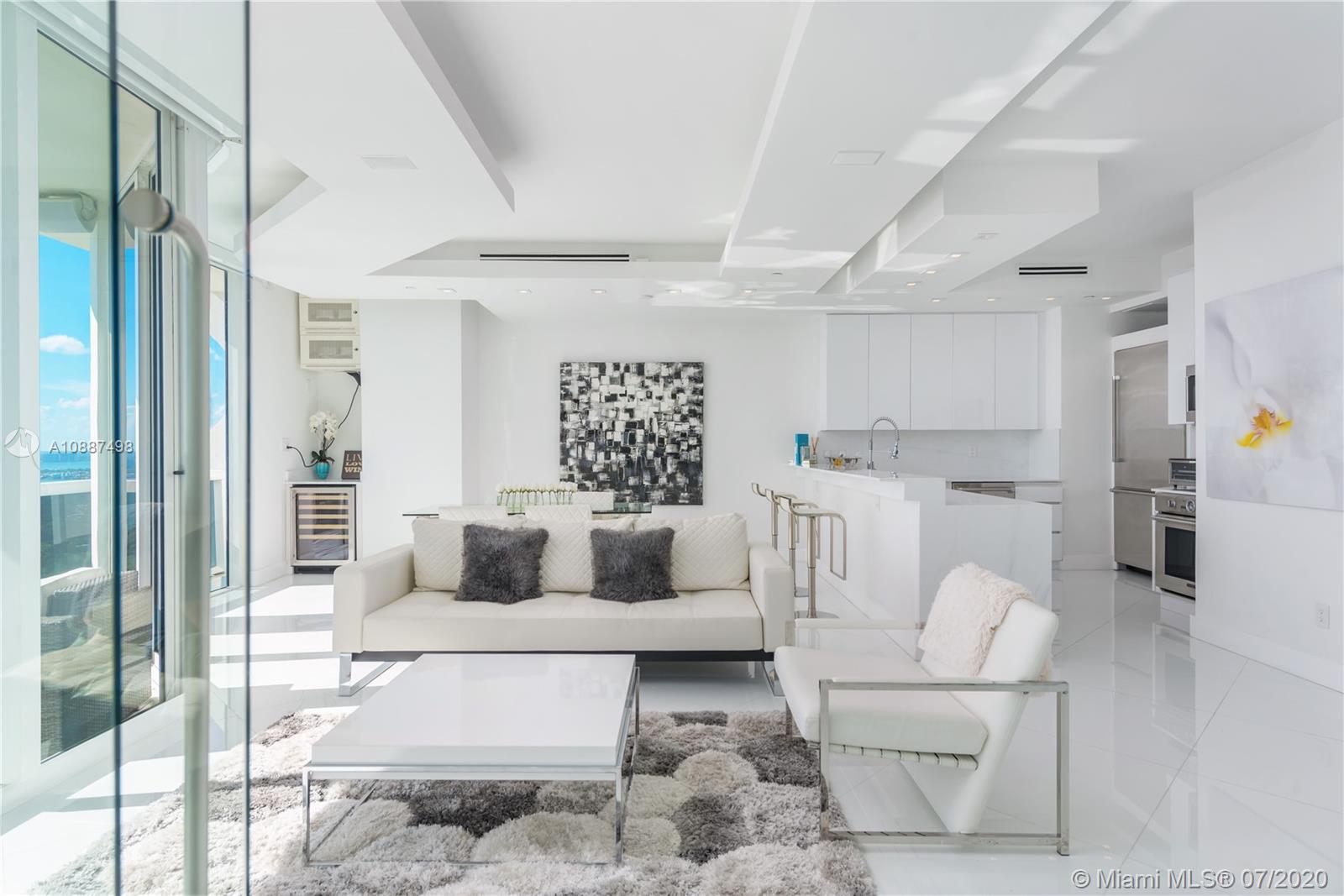 Enjoy breathtaking views of the bay and city skyline from this one-of-a-kind designed penthouse. Throughout the condo are coveted features including floor- to -ceiling windows providing plenty of natural lighting; electric shades; LED custom lighting, high ceilings & marble floors throughout. The kitchen opens to a large living and dining room area, with top of the line appliances. Expansive suite bedroom is a showcase. Being offered furnished. The Blue Diamond Condo is one of Miami Beach’s most sought after addresses. Enjoy luxury beachfront living with five-star resort-style amenities.