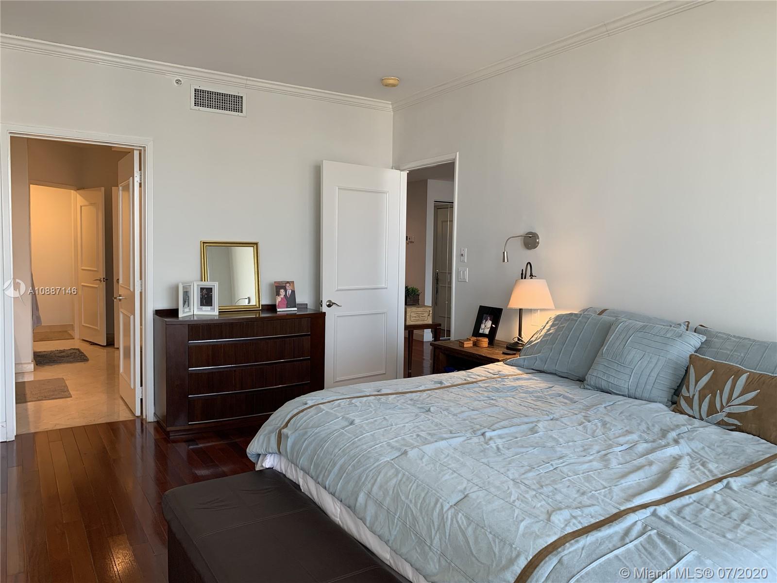 Unique Penthouse plan offers a spacious & very bright 2 bed / 2 bath unit in exclusive Ocean Club. Private elevator into unit; distinct floor plan to other units - doesn't have the hallways that overlook into the 2nd bedroom windows providing more privacy. Beautiful wood floors, open kitchen, split plan; each bedroom has a balcony. Master bedroom & living room balcony have great views overlooking the lake, & 2nd bedroom balcony & kitchen face the palm trees & the Miami downtown/Brickell Skyline view. Two parking spaces assigned; one covered, & one outside. Includes separate storage in the garage level. Per tax rolls 1450 sq. ft., but Seller believes it to be 1572 sq. ft. Enjoy full resort style amenities including full service spa, gym, tennis restaurant, beach, Olympic pool, & more.