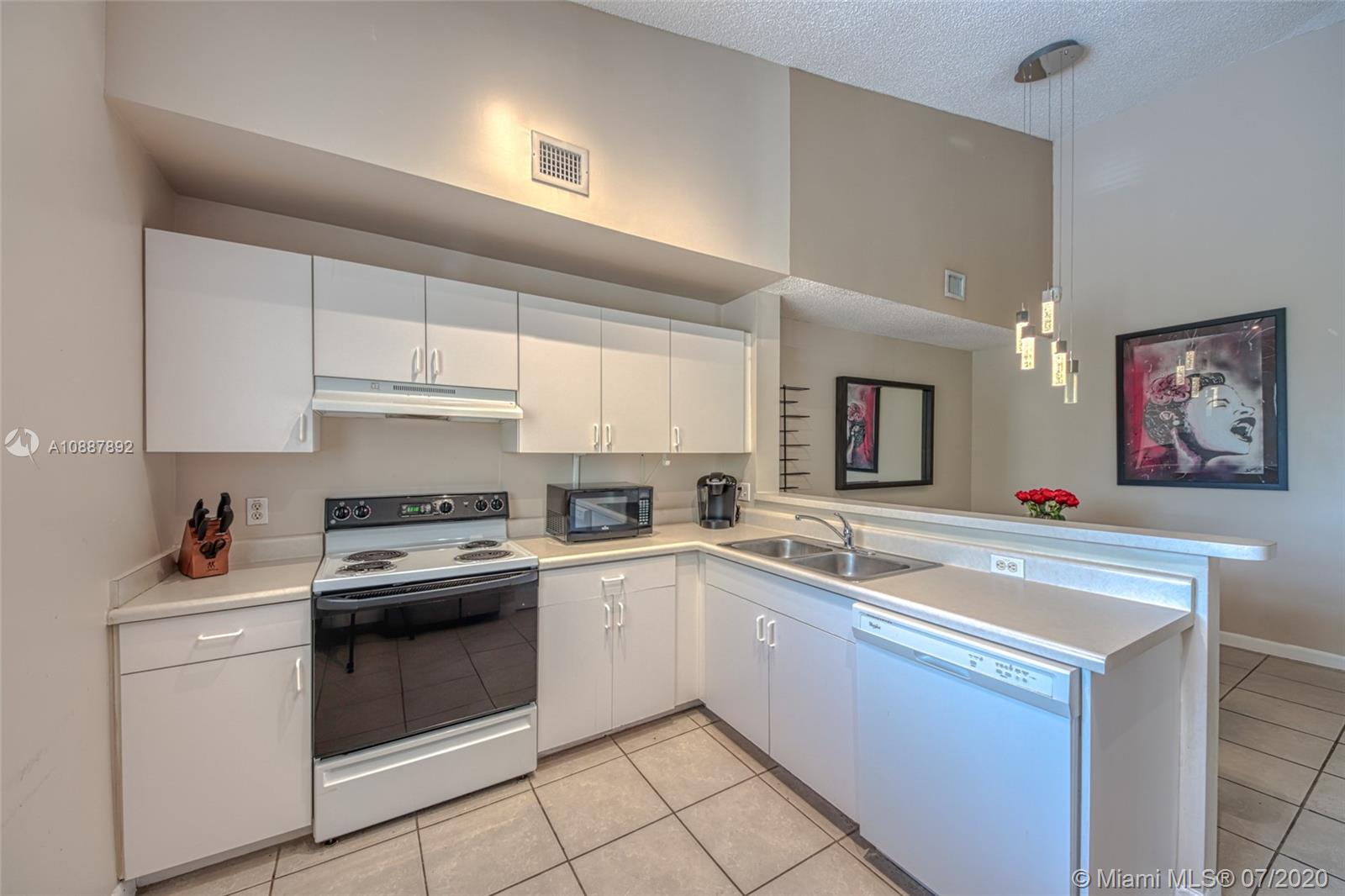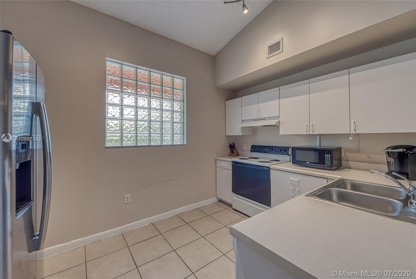 Immaculate 2 Bedroom, 2 Bathroom corner unit condo in the heart of Davie! Located in the desirable gated community, The Courtyards at Davie. Spacious floorplan offering an oversized kitchen, separate dining area, vaulted ceilings & tile throughout. Renovated bathrooms. Brand new A/C with NEST thermostat. Large balcony with a storage room. Full size Washer and Dryer in the unit. NEST wired surveillance. Pet friendly community with private pool, tennis courts & exercise room. Close to highways, shopping and restaurants. Walking distance to NOVA & Broward College. Can be leased right away!