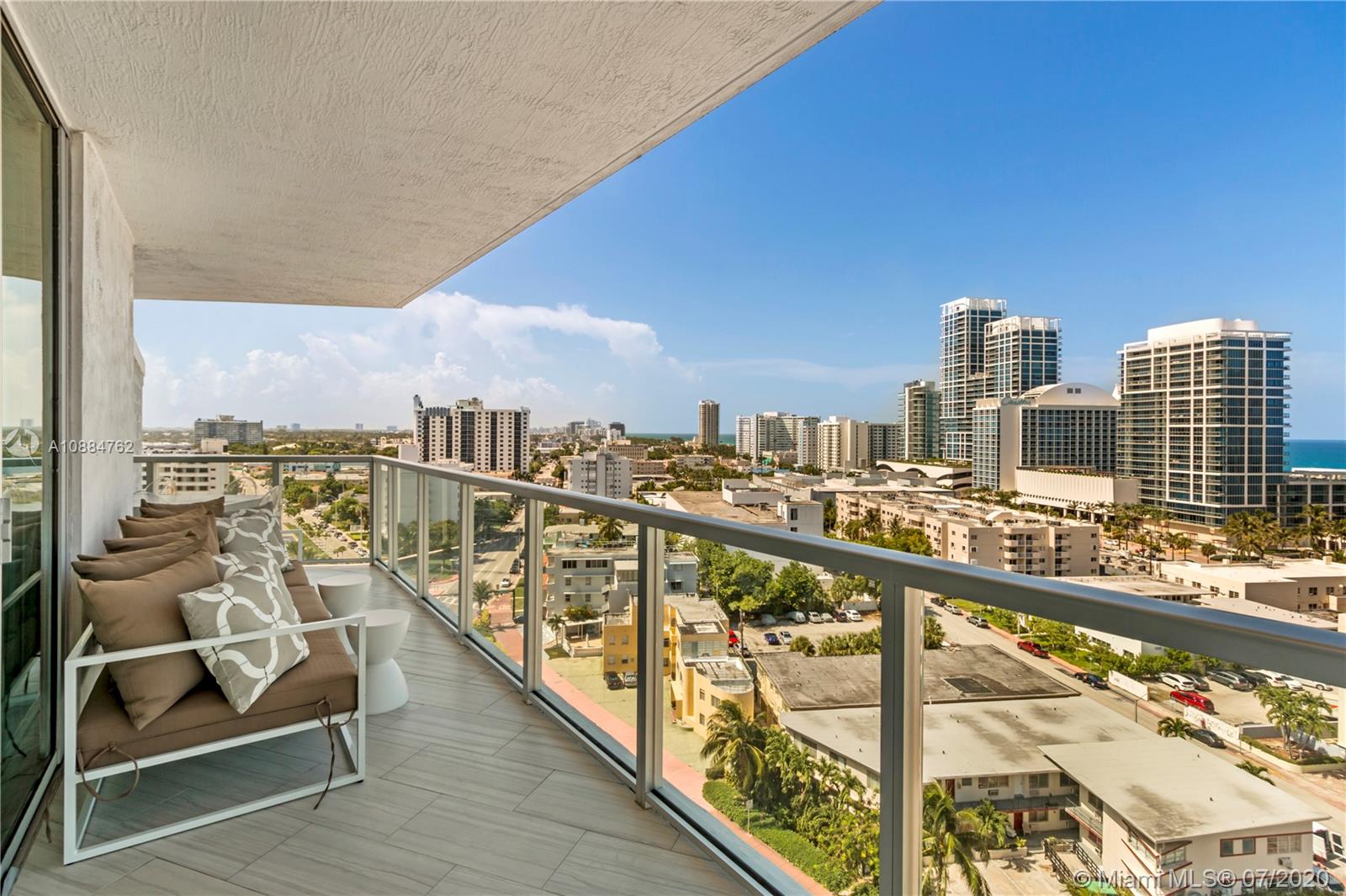 Corner 1 bedroom at Boutique Eden House in Miami Beach. Decorator Furnished condo with Ocean and Skyline views comes with interior and exterior furnishings. Floor to ceiling windows highlight the 180 degree views and wide wraparound balconies. Once you park your car or valet, enjoy the private elevator entryway. Master Bedroom features a private balcony and bathtub in Master Bath. Separate utility/ storage room with full size washer and dryer. Eden House is a full-service building in the heart of Miami Beach. Building offers quiet and serene areas, a grand 2 story lobby, beautiful landscaping, and a gym overlooking the water. Spend the day sunning on property or head to the beach and don’t forget to check out the nearby world-renowned restaurants. Storage Locker #7 Parking #29 (2nd Floor).